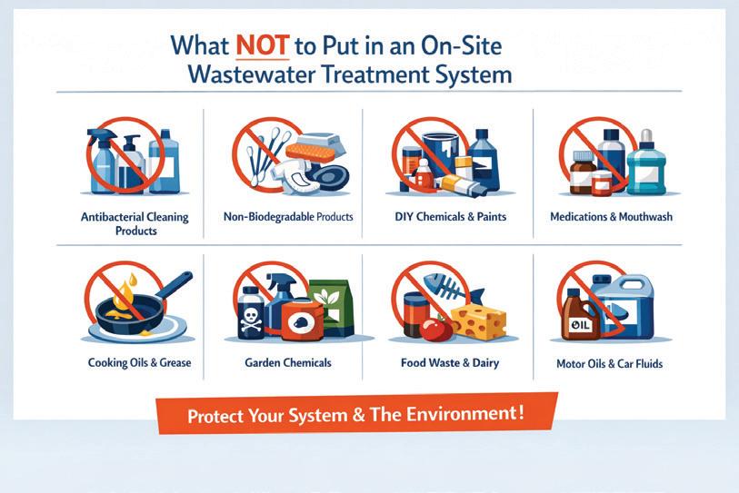 Wherever the opportunity arises to install a new sewage system or to upgrade an existing one, we must endeavour to eliminate pollutants from being discharged to waterways and prevent contamination of underground water sources such as wells, springs or aquifers.