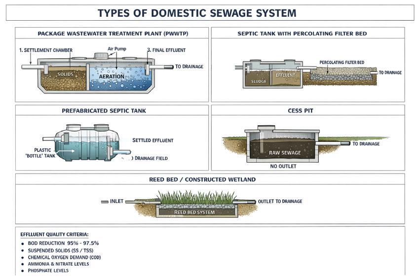 Here’s an overview of the types of domestic sewage systems available today.
