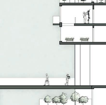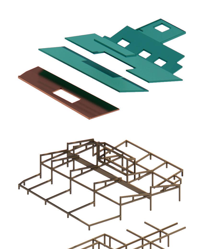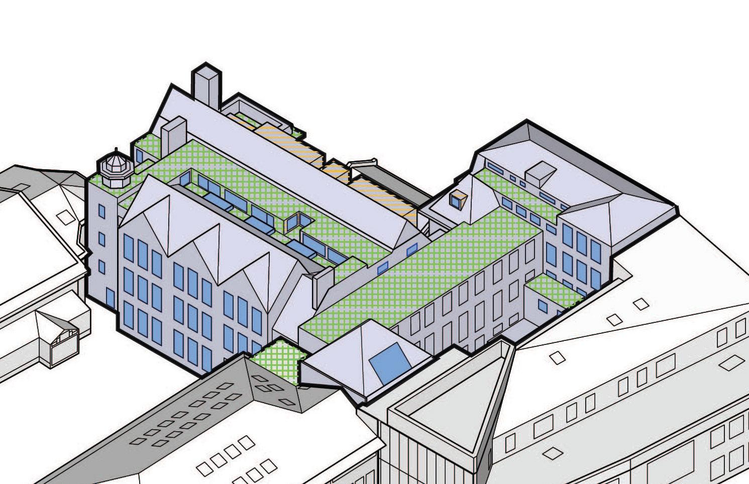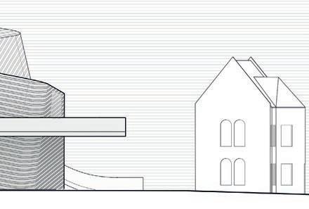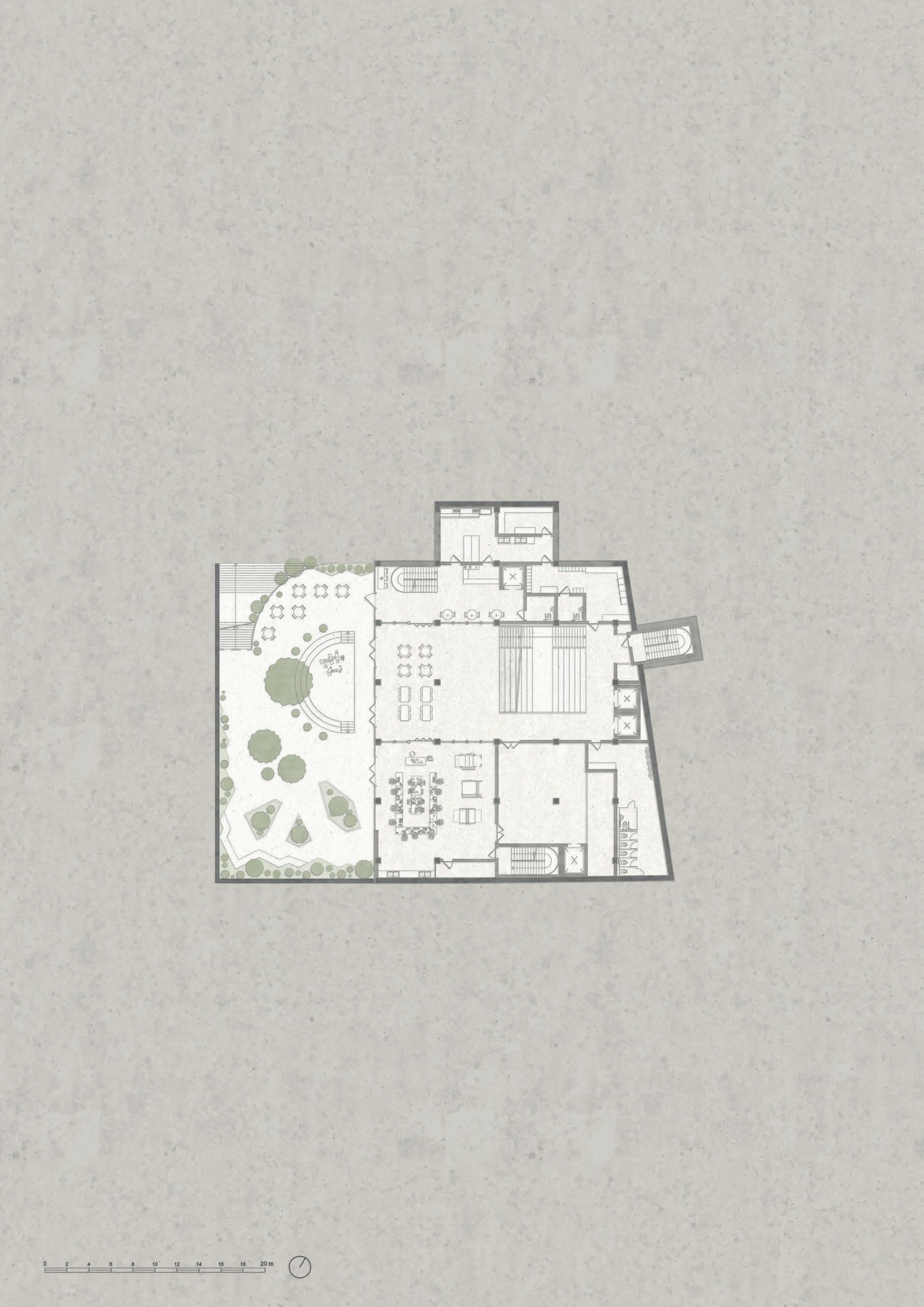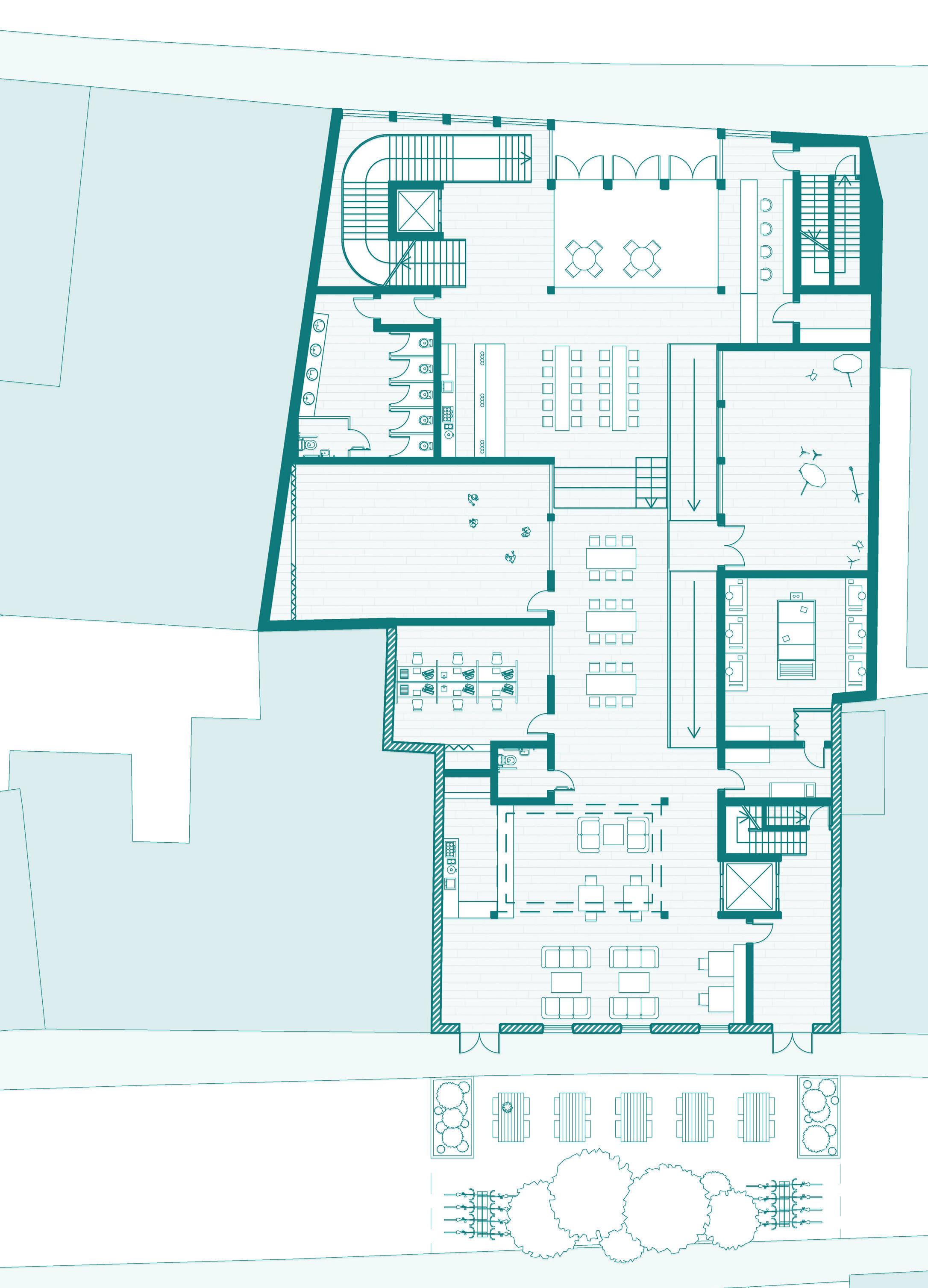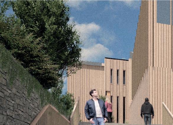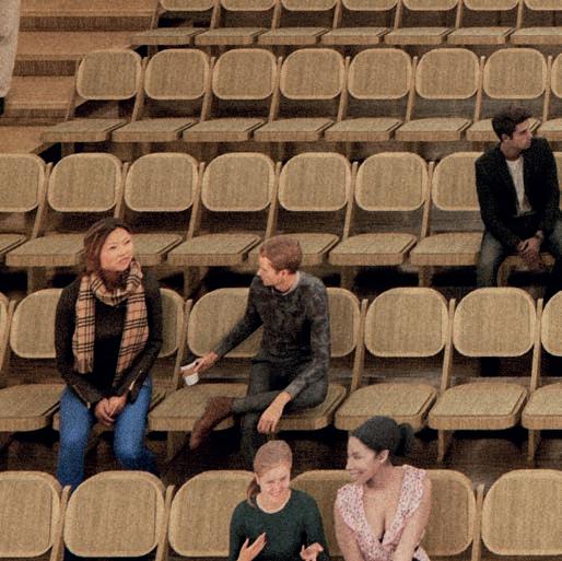 The building simultaneously acts as a community hub with the provision of a film and theatre workshop spaces. Public access to these facilities and classes enables more opportunities for people to get involved with the film and theatre industry. This in turn encourages representation. Creating an environment which focuses on community helps to foster connections between people. The theatre will boost individuals’ sense of belonging, encouraging unity among the residents of Oxford. The workshop, public amenities and intercultural theatre are combined under one roof to become architecture that is of, and for, the people of Oxford. The site is bordered by two busy streets. The design addresses these two frontages by treating the ground floor as an extension of the external street both in the north and the south. The stone façade of the existing south elevation will be preserved due to it being a Grade I listed building. The notional floor levels of the Georgian stone exterior are used as a guide for the internal floor heights. Existing masonry is paired with a copper roof which is inspired by vernacular architecture of Oxford which features many patinated copper roofs. The patinated copper roof stretches across the building and is met with copper standing seam cladding. The variation in copper’s aging is an expression of the existing masonry being integrated with the new-build in the north of the site.