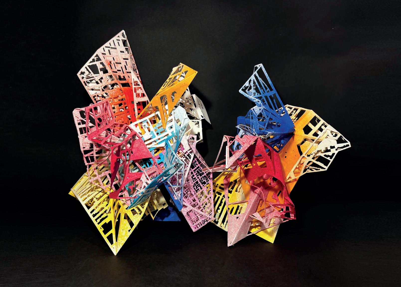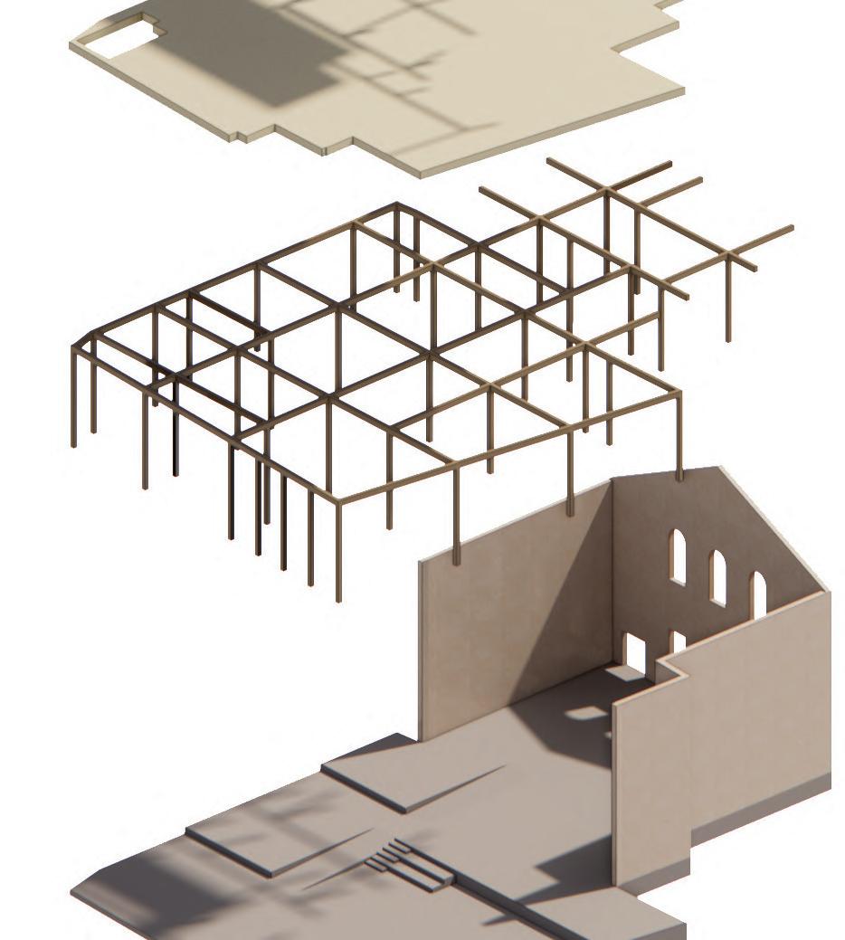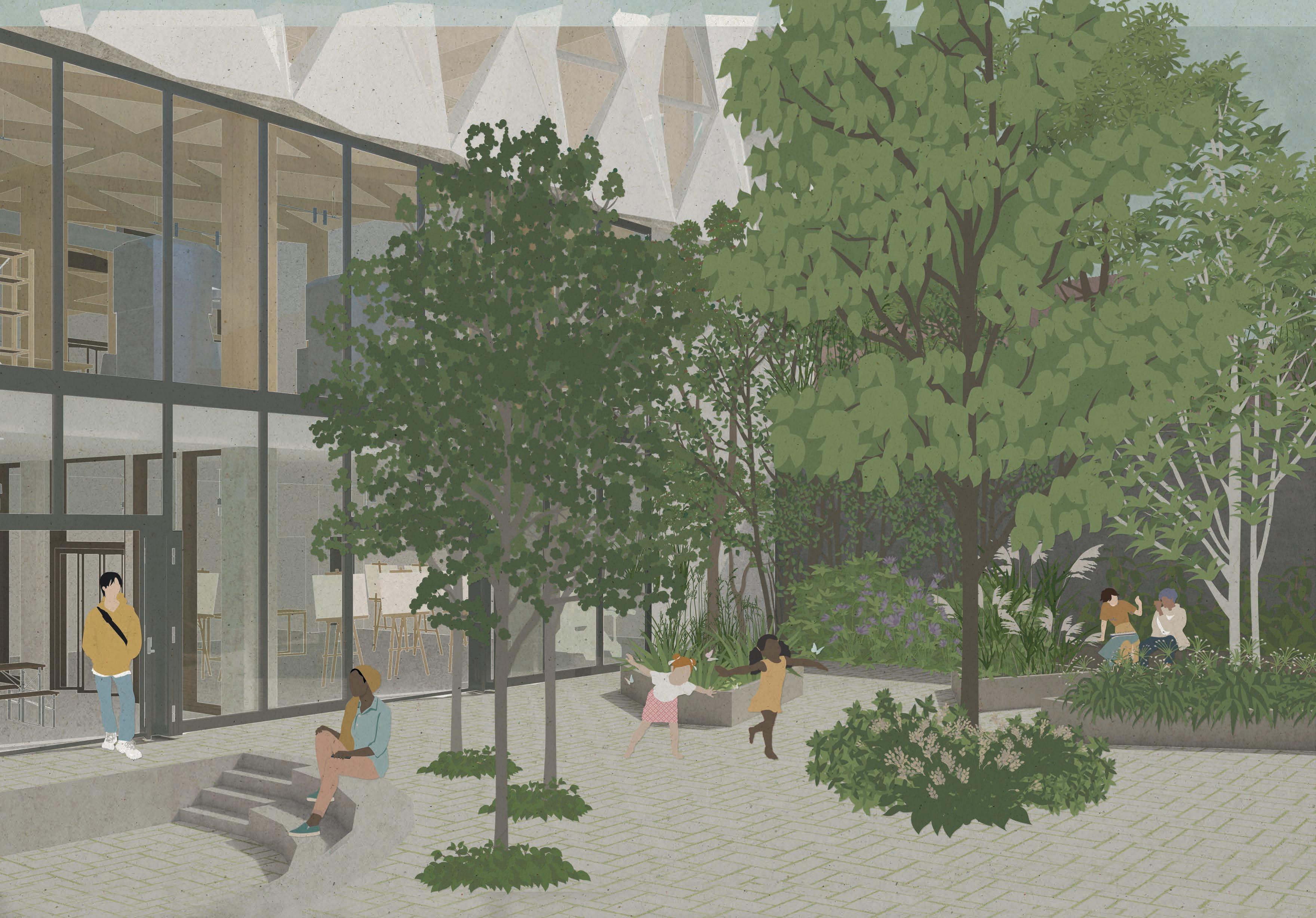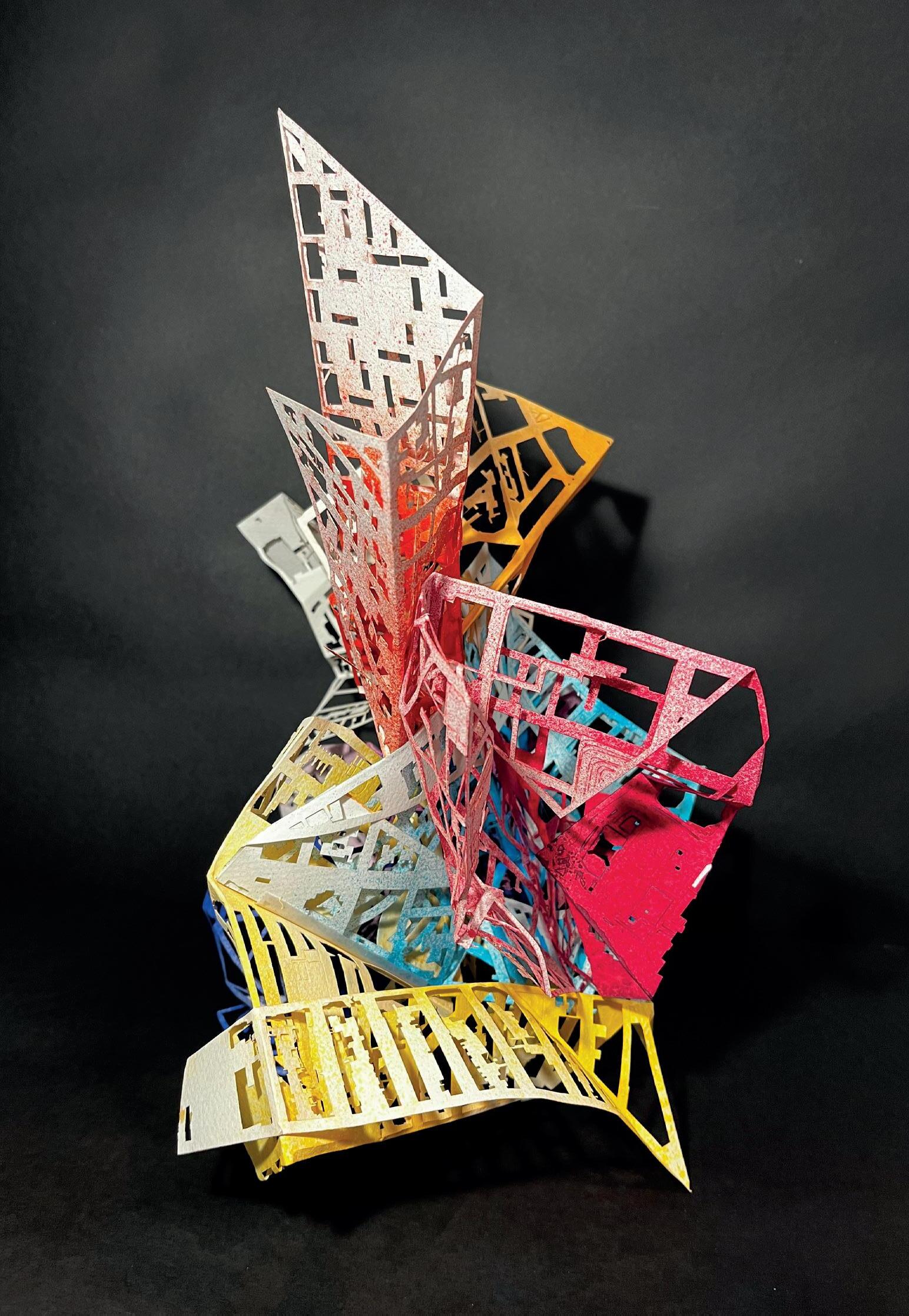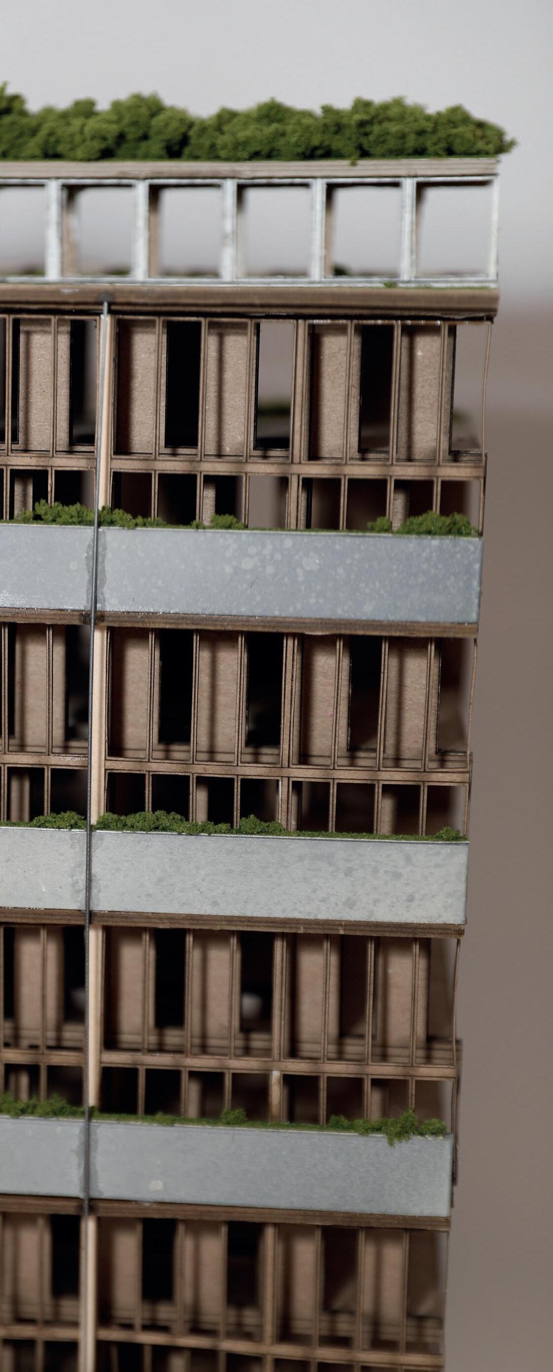 The project hopes to breathe new life into the local community by proposing open-access workshops dedicated to the traditional craft techniques of print and papermaking. These workshops will serve as a hub for creativity and sustainability and a symbol of future growth. Accessible to all, the building will encourage artistic exploration, learning, and skill development. The program fosters sustainability by reusing the existing basement structure and integrating an outreach program using Swindon’s waste paper for hand-crafting. The reuse of the previous building’s concrete basement promotes refurbishment as a way to reduce carbon emissions. The approach also presents the opportunity to showcase the interplay between Swindon’s past and present. Inspired by origami, the folding façade pays homage to papercraft while embodying the functions and purpose of the building. This narrative is consistent throughout the design, with structural features leaning into the idea of folding and paper’s transformative qualities. Exploring the material theme further, visitors are taken on a journey through the building as each floor represents a part of paper’s story and life cycle.