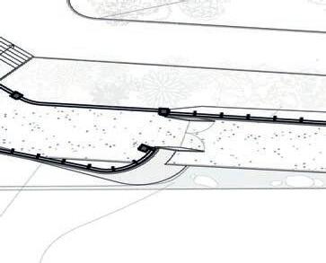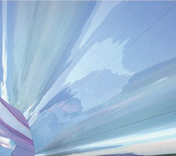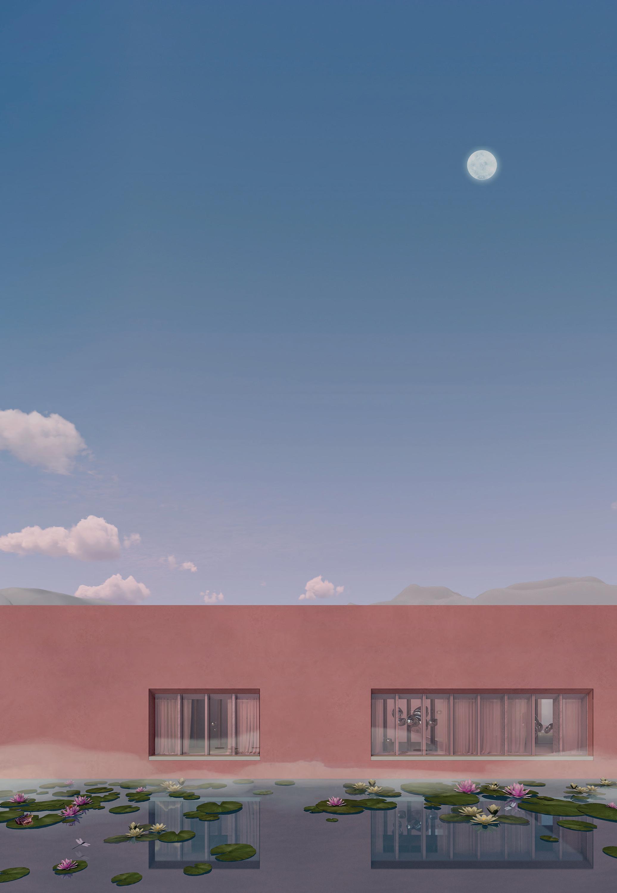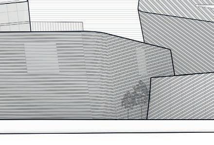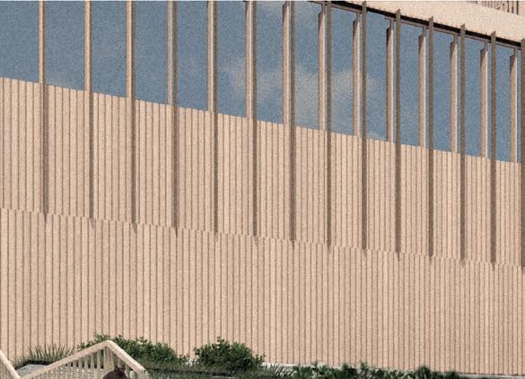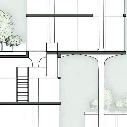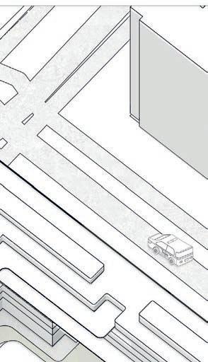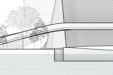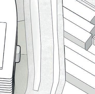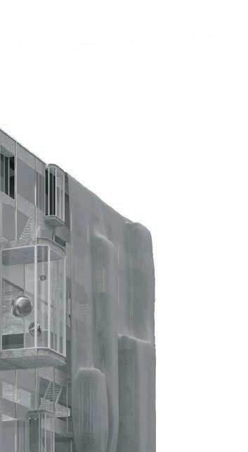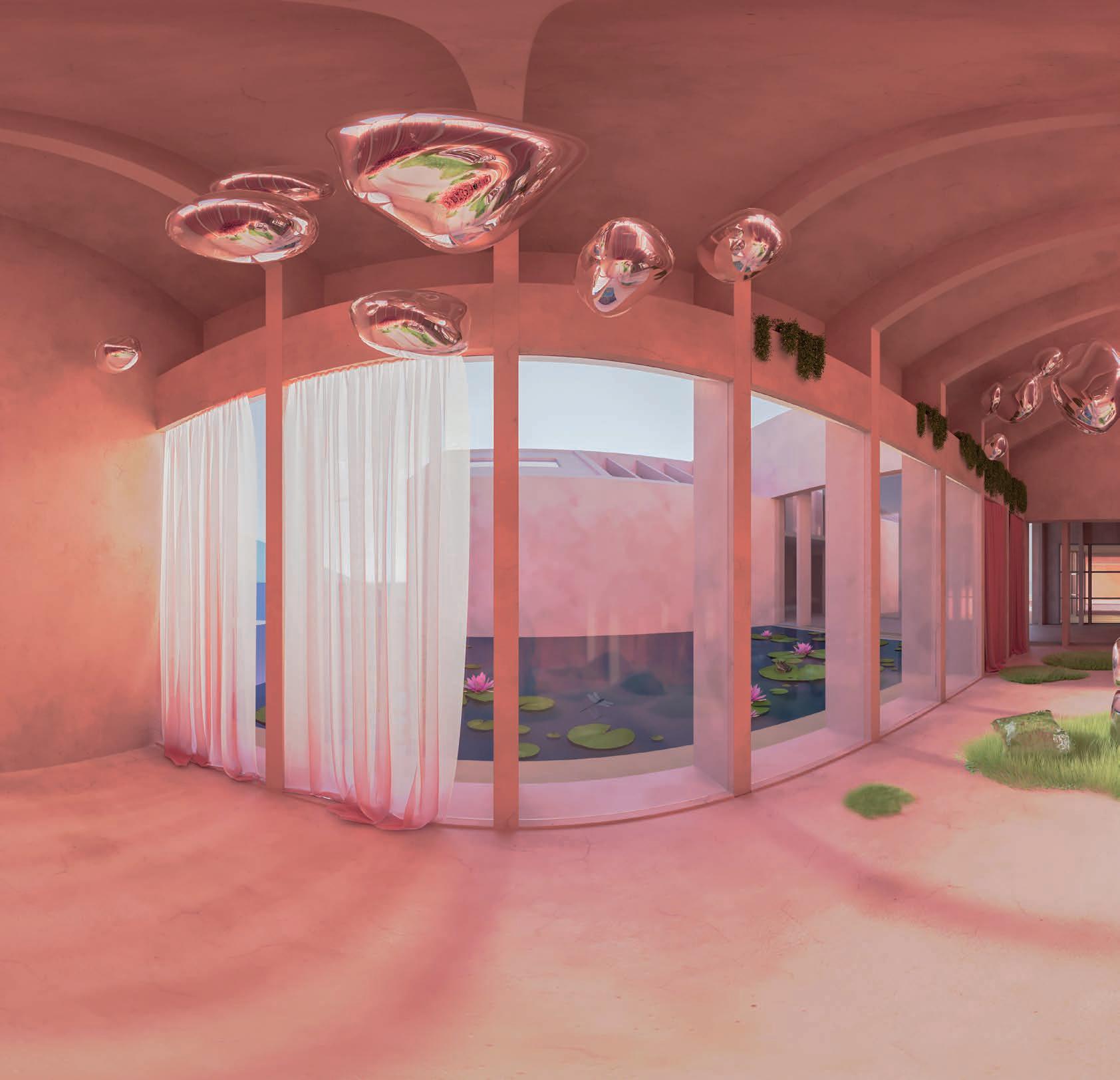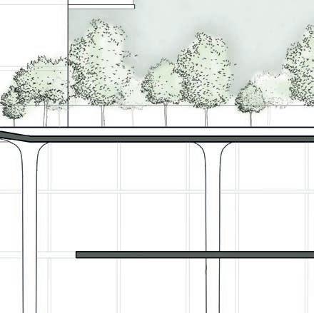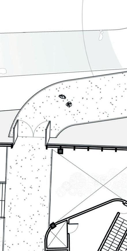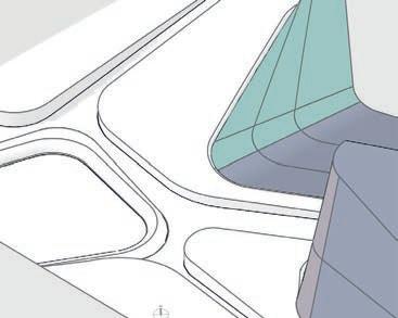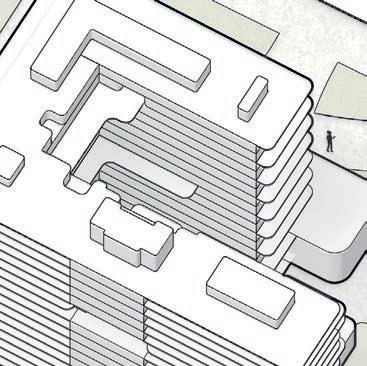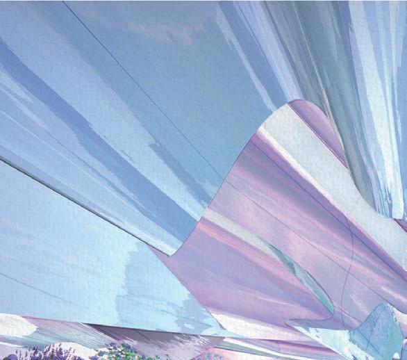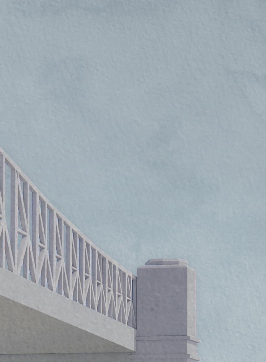 This idea of grounded sustainability and machine processes manifests as pebble-like forms that are both a homage to industrial machinery and a return to our natural landscape. These soft, rounded volumes sit within the landscape as both decorative and functional buildings. There is a contrast between the natural landscape and man-made infrastructure throughout the proposal, with water even becoming part of the main design concept. The concept of fl ow is central to the design, but this is drawing inspiration from both the idea of fl ow throughout processes and the gradual fl owing of water.The water within the landscape varies depending on the time of day, as it is aff ected by the tide.The water then becomes a mediator between the architectural design and the East River. This concept is echoed in the façade, which incorporates fl owing pipes as both opaque walls and shading devices. Finally, a rippling walkway leads visitors deeper into the site from the adjacent park and invites people to discover what activities are hosted by the peaceful pebble forms. Work included are the drawings and visuals I developed as part of a collaborative design and working process.