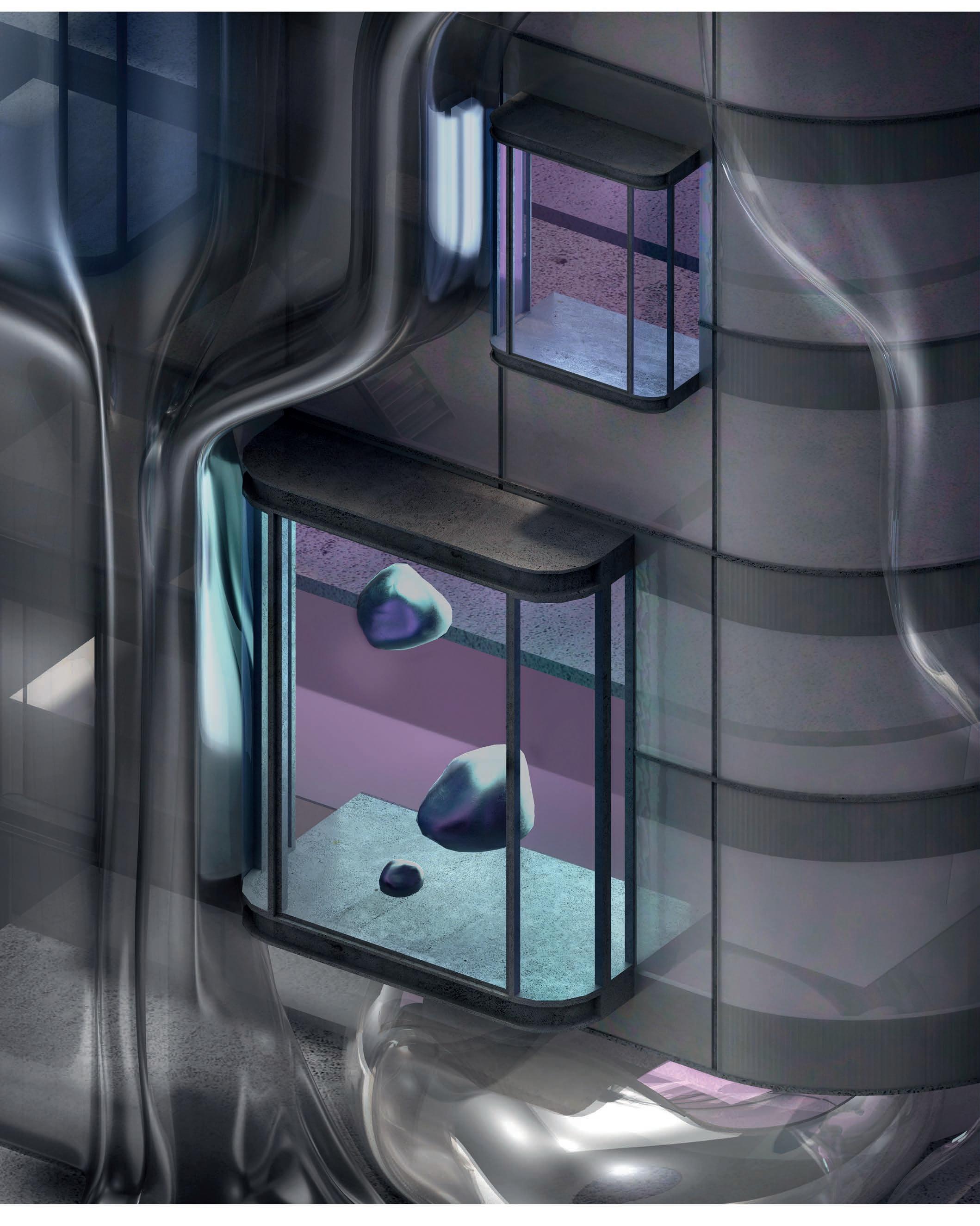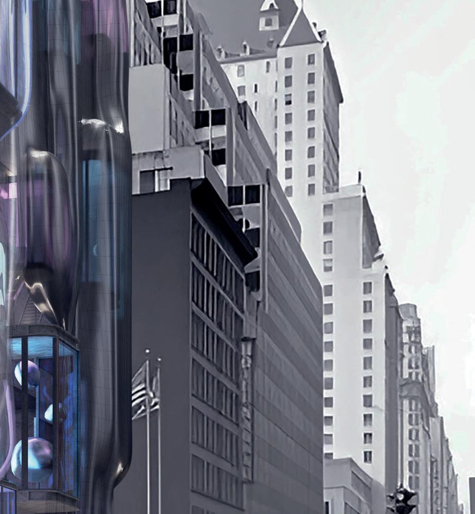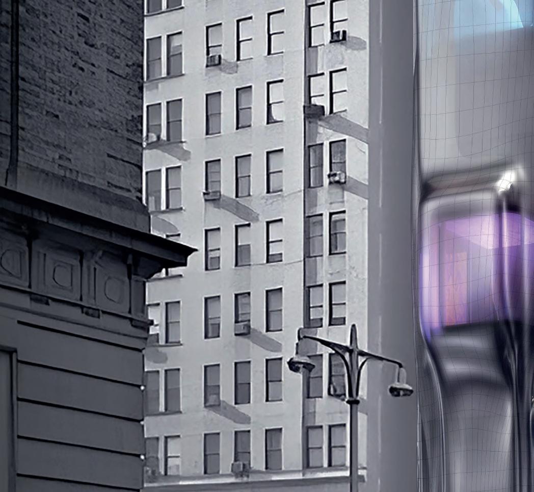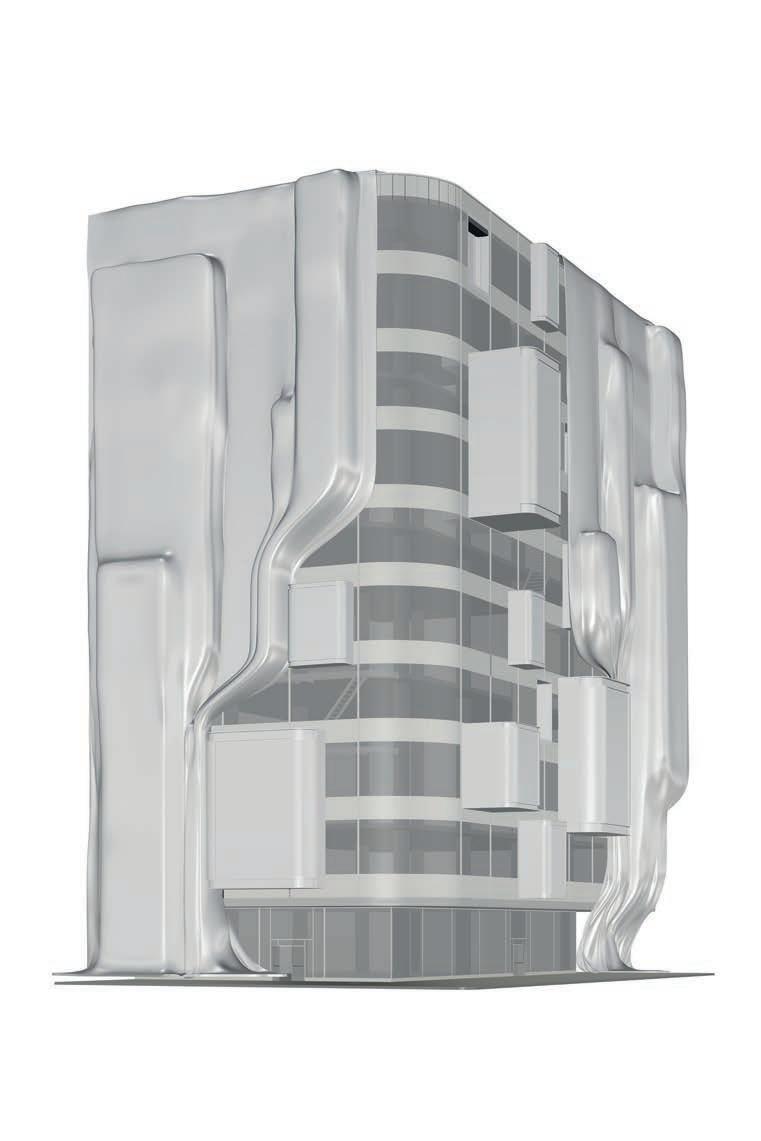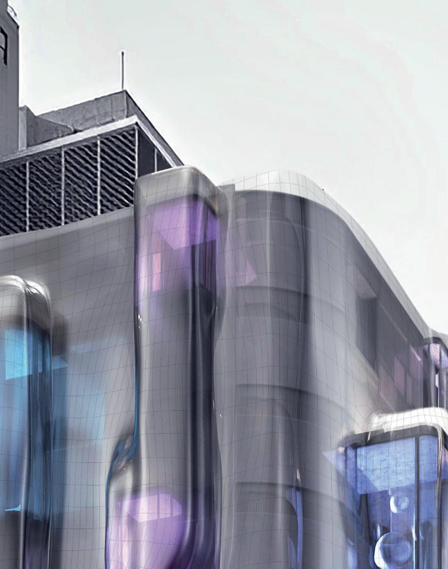 Surface Tension explores ways to develop ideas for façade systems through image-making and visualization techniques. The proposal is a reinterpretation of the existing 500 Park Avenue building. The corner location and existing glazing become a basis for adapting the building’s massing and structure to create a conceptual architectural skin. I have always been drawn to forms that appear soft or fluid because of their illusion of continuous movement. I wanted to investigate this idea by emphasizing the tension brought about when a solid material can have an implied weightlessness through its form. This tension questions the idea of ephemerality and permanence.
