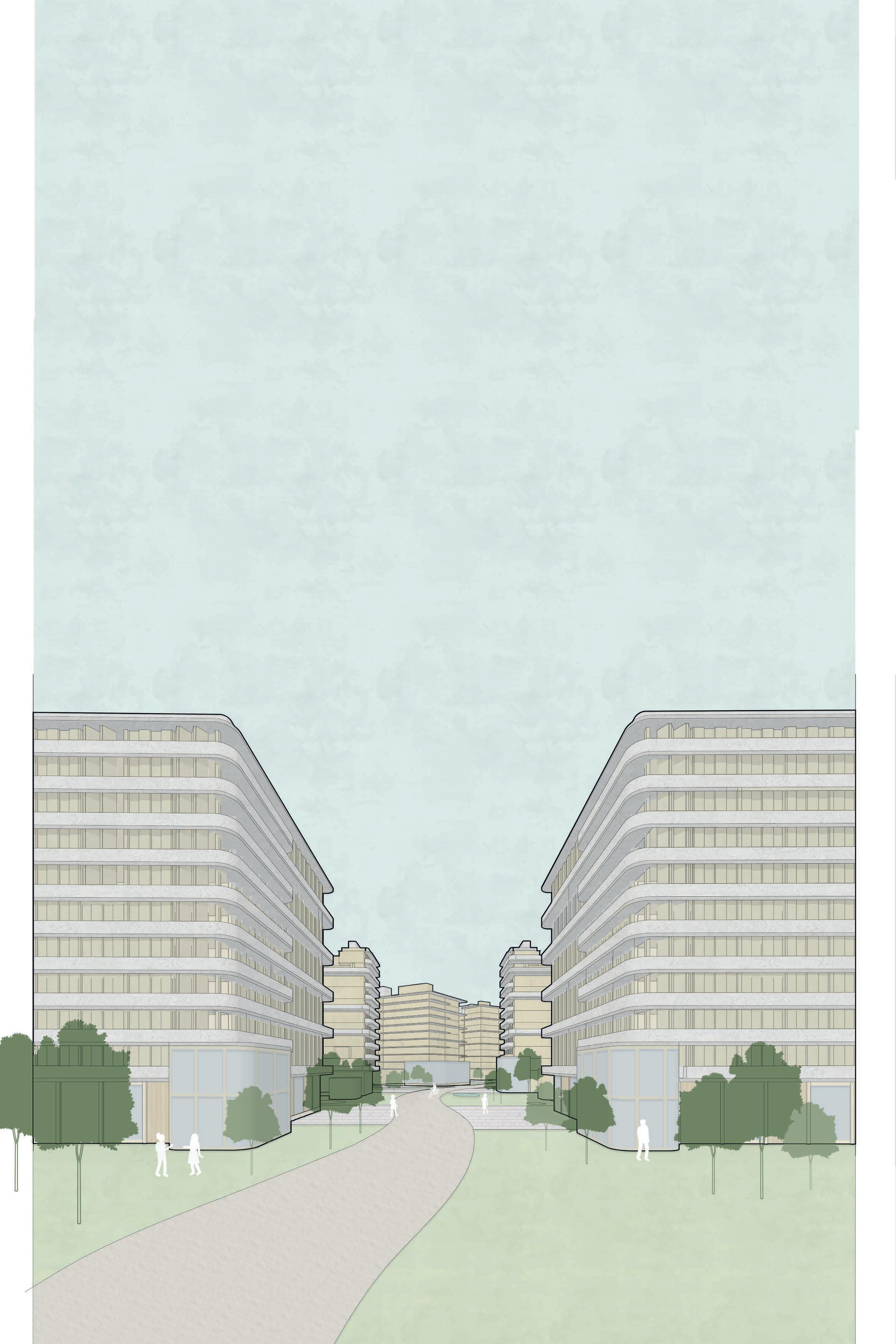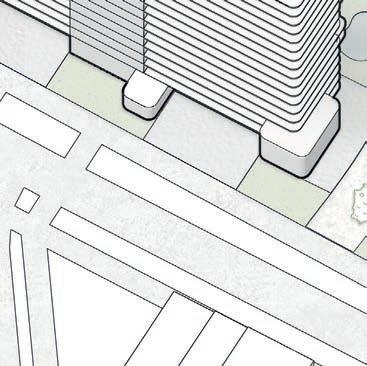The refurbishment of the Bushwick NYCHA housing project redefines urban community living by transforming isolated blocks into interconnected, inward-facing courtyard clusters. The design activates the street level with communal spaces and landscaped areas, fostering interaction and belonging among residents. The design links existing residential blocks in pairs with new additions, forming courtyards lined with curved terraces. These terraces serve as circulation routes for the apartments and communal spaces, overlooking a shared courtyard. This arrangement promotes community engagement while maintaining privacy for the residents. The building forms are kept simple to ensure cost-efficiency and consistency. This approach supports the project’s function as housing and allows for repeatable elements. While the form adapts to different site contexts, the architecture remains minimalist, acting as a backdrop for community activities. While creating enclosed courtyards, the design maintains open visual connections and lines of sight through strategic openings. This openness preserves the site’s connection to the surrounding urban environment and ensures the housing complex remains welcoming to residents and the community.