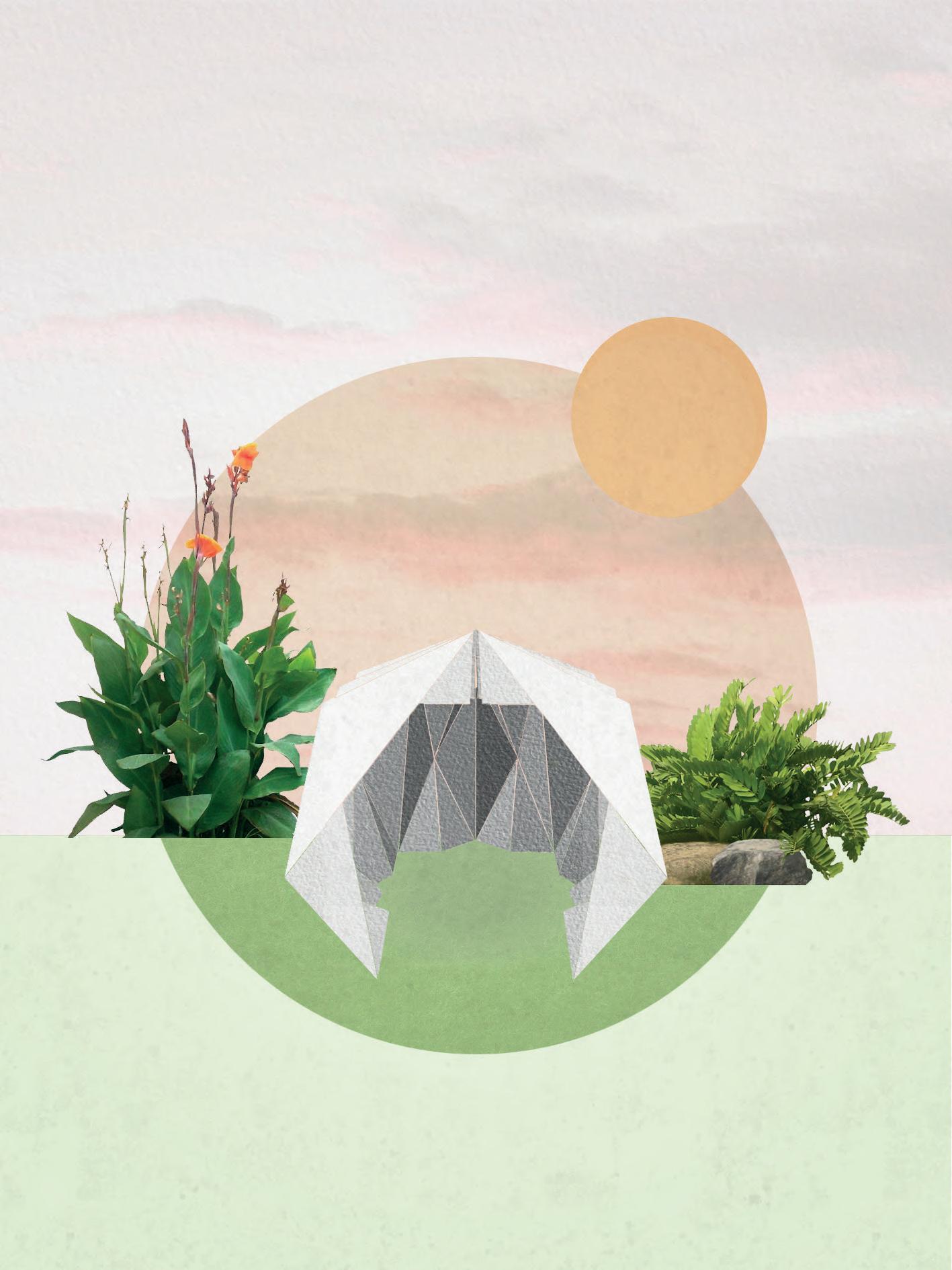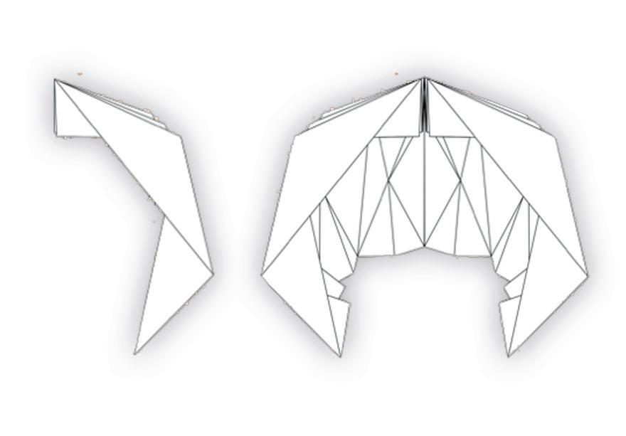 Functionality and transportability were the key aims throughout this project. I aimed to craft a folding shelter with the exploration of core origami principles. I wished to explore the collapsible nature of origami and its potential use for creating temporary structures that are easy to transport. There was a challenge in designing a structure which is stable during use yet can be compacted and light when folded. I created a 1:2 prototype model to trial whether the idea indeed functions in real life. The final result was successful in providing both practicality in its deployed state and compressible for convenience during transportation or storage. I hope to always come back to this idea of converting between 2D and 3D. This conversion between sheet material and structural forms intrigues me. These ideas are also particularly relevant to using materials resourcefully when thinking about sustainability.