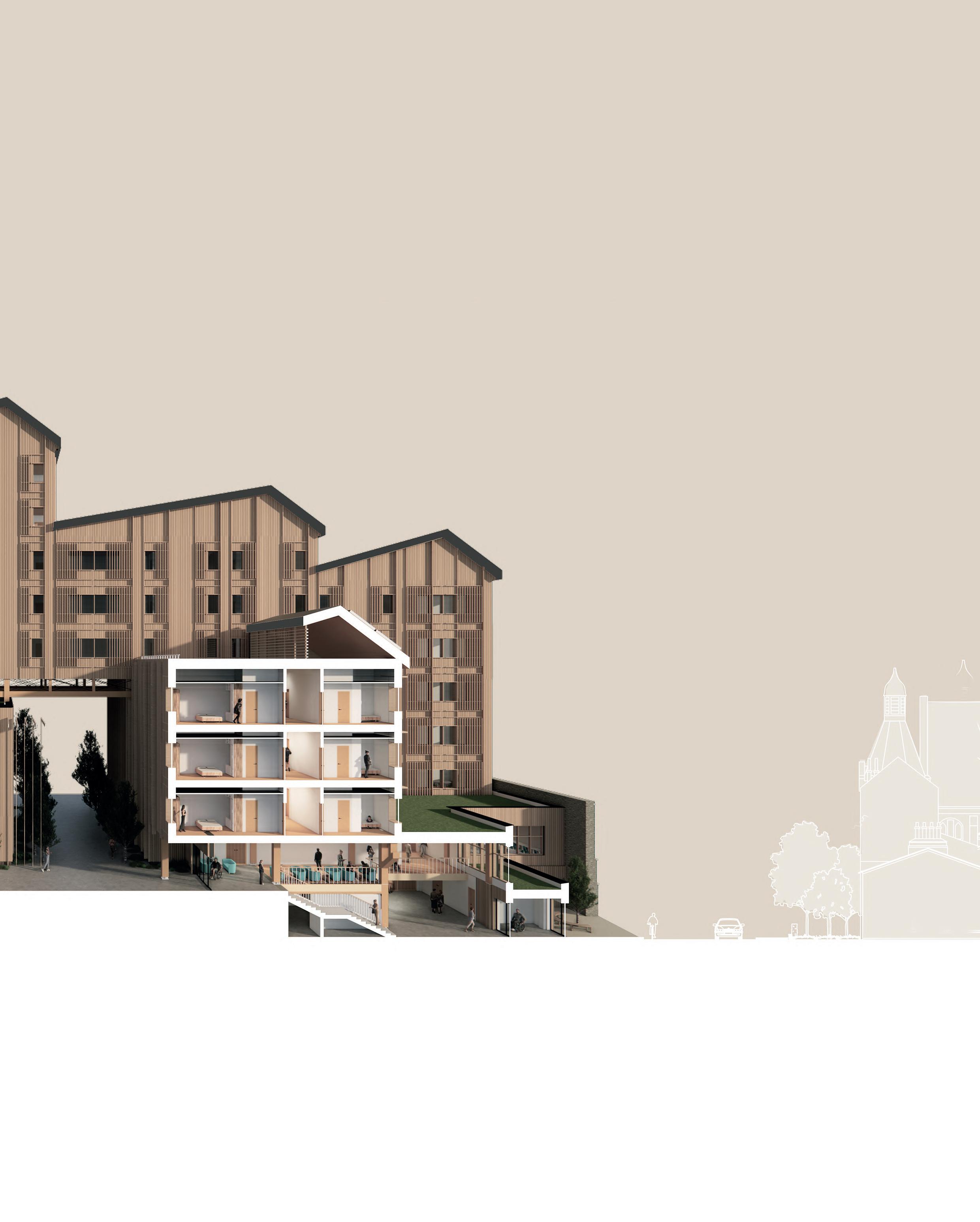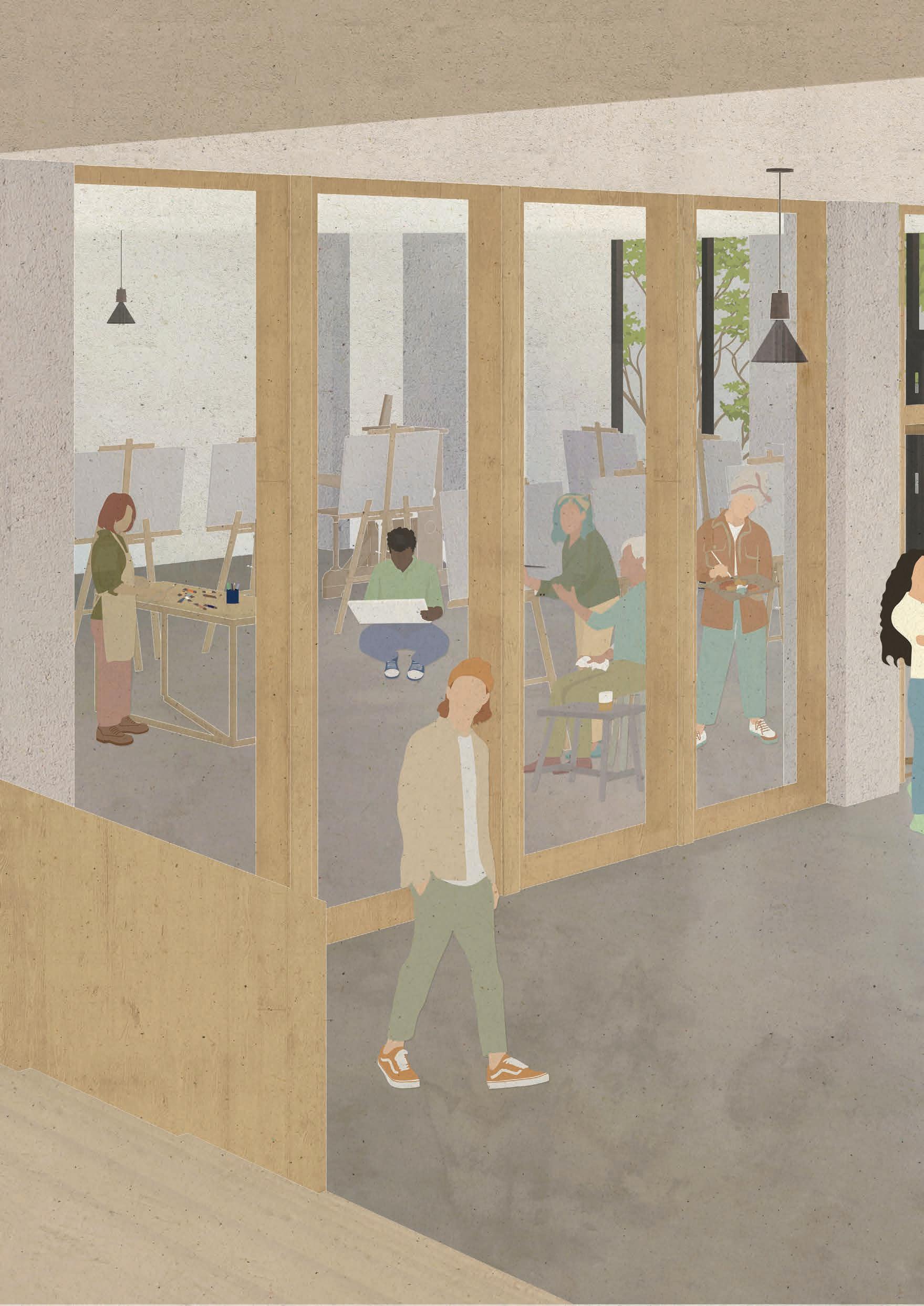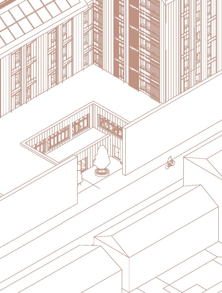 The aims of the amenities provides are to promote Community, Healthy & Sustainable Lifestyles, and Intergenerational Living. These are all essential in fostering a holistic environment that benefits the wellbeing of residents. The amenities have a focus towards long-term environmental and social sustainability. Community strengthens social ties and creates shared spaces for interaction. Prioritizing healthy & sustainable lifestyles will improve overall physical and mental health of residents. This encompasses the provision of community exercise/activity spaces and shared food production allotments. Intergenerational living encourages diverse age groups to coexist and benefit one another. From the initial research, it was noteworthy that many lived alone in the existing apartments. Flexible living will enable families to grow over time and to downsize later if necessary while providing facilities catering to all ages will help preventing feelings of isolation. The housing proposal presents flexible and dynamic spaces that will form the basis of a supportive community that evolves with residents’ changing needs.