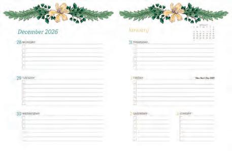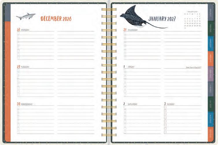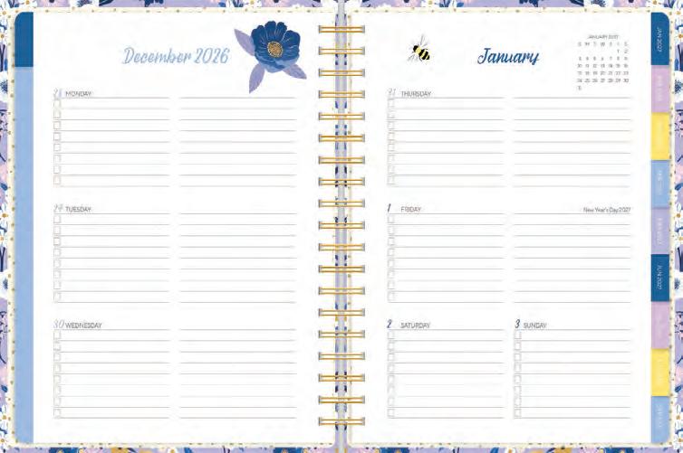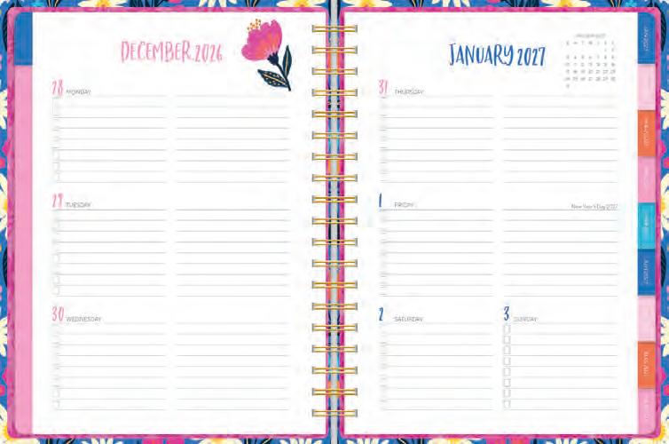 Offered in a variety of distinctive designs from six independent artists, this planner style is an appealing and stylish organizational tool. The hardbound cover, elastic closure, and wire-O binding make it durable, and the large size affords more space for writing and planning. High Note® hardcover planners include 17 full months of planning, from August 2026 through December 2027.