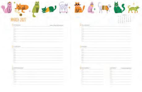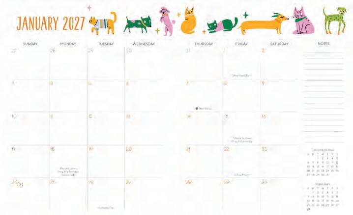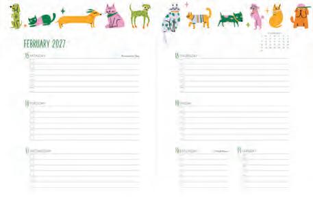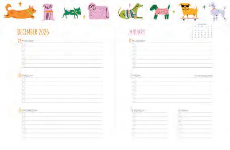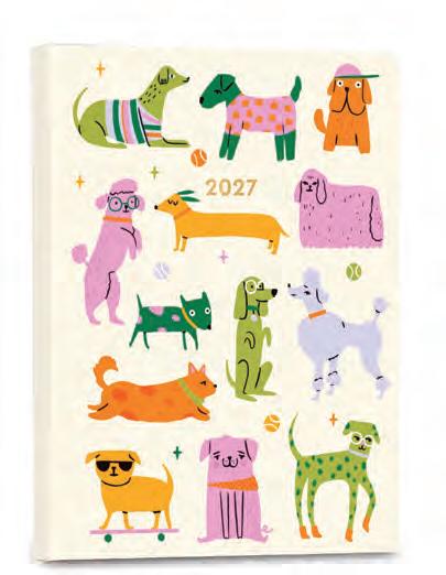 For the pet lover, this planner features fun and colorful dogs on the cover with more furry friends inside.