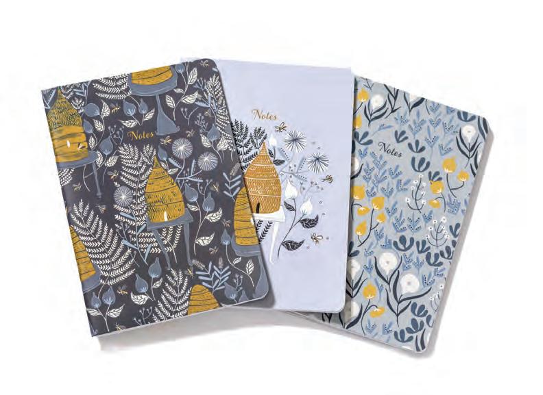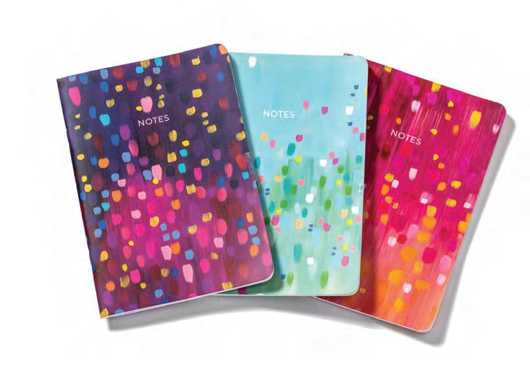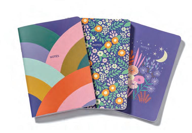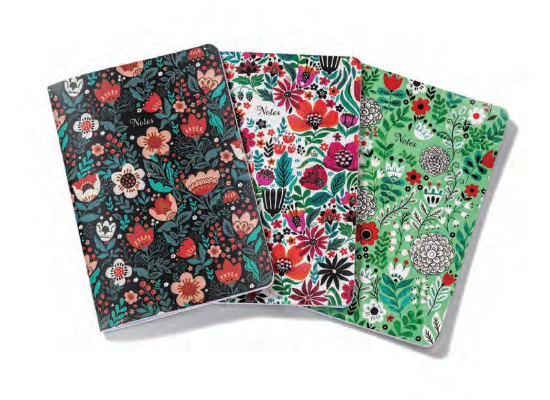• Product size: 5.75" x 8.25" • Textured cover with printed embellishment • Non-dated • 64 lined pages for each notebook • 3 unique designs • Packaged with bellyband and poly bag