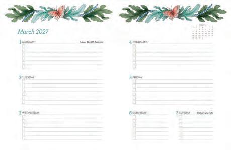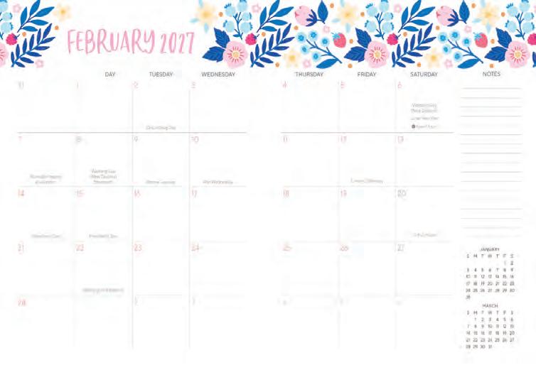 Jess Phoenix creates bright, colorful floral designs that jump off the page. The cover of this monthly planner features gold foil details and will be printed with a pop of spot color for extra vibrant hues that are sure to grab the attention of all passers by.