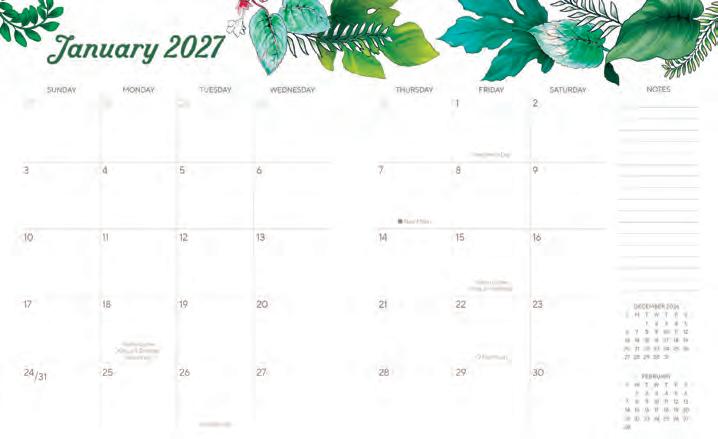 Designed for the plant lover, the Greenery Collection is inspired by the popularity of botanicals in interior decor. This deluxe planner features the work of La Scarlatte and provides a visual feast of fresh flora throughout the year, with designs that are simultaneously lush and vivid, wild and calming.