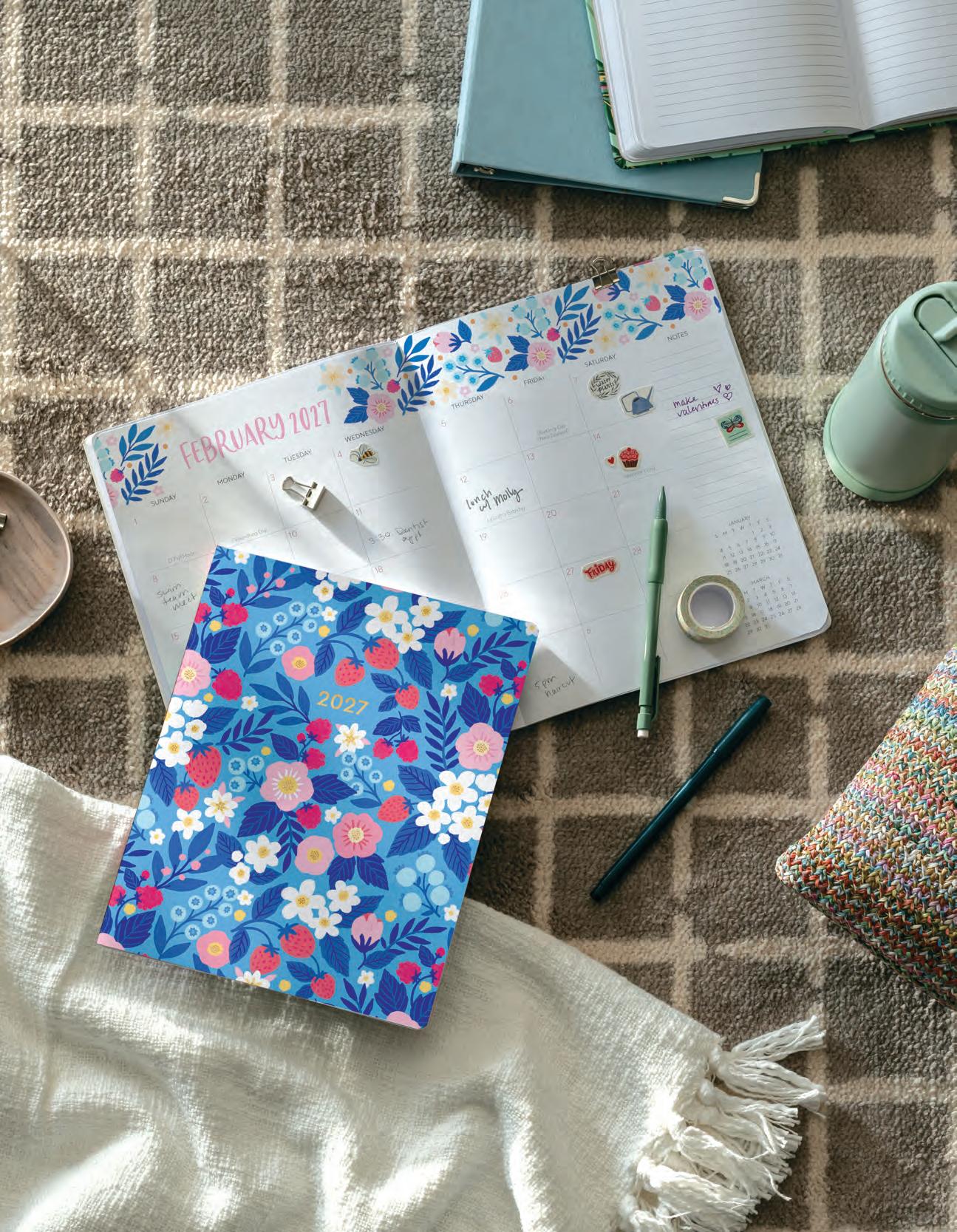 Fruit motifs are a popular trend in the marketplace and continue to be fashionable on clothing and homegoods, as well as within the gift channel. This beautiful deluxe planner by Jo Reid features the bright colors and sweet feeling of strawberries in the summer and has 17 months’ worth of fresh organizational inspiration inside.