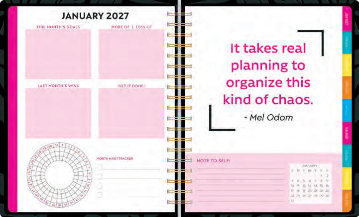 Say goodbye to chaos and hello to clarity. This isn’t just a planner — it’s a personal assistant, life coach, and productivity partner all in one beautifully designed package. This bold new grid design will guide the user through more than a year of planning not just for the day-to-day, but goals for the year, month and week.