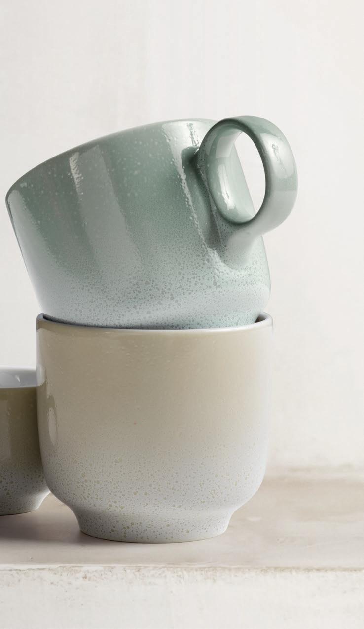 SENTO Aura überzeugt in den Farben »White«, »Beige« und »Mint« durch seine einzigartige Haptik. Die Oberfläche der einzelnen Geschirrteile fühlt sich geschmeidig an, während feine Sprenkel für eine spürbare Struktur sorgen. Diese winzigen, leicht erhabenen Partikel schaffen subtile Akzente, die unter den Fingerspitzen zu spüren sind und dem Material eine spezielle Tiefe verleihen.