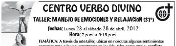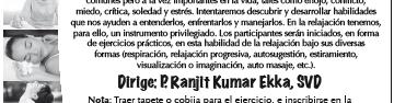 Se ofrece la 7ª Jornada de Salud Mental, Talpita 2012, del 23 al 27 de abril, con temas como “Prográmate para ser feliz”; “Reconcíliate con tu yo interior”; “Mantente sano y joven controlando tus emociones”; “Cómo ser fuerte ante las adversidades”, entre otros. Será en el Teatro Parroquial Talpita (Calle 58 # 939, entre las Calles Santa Clemencia y San Esteban). Informes, al 3643-7598.