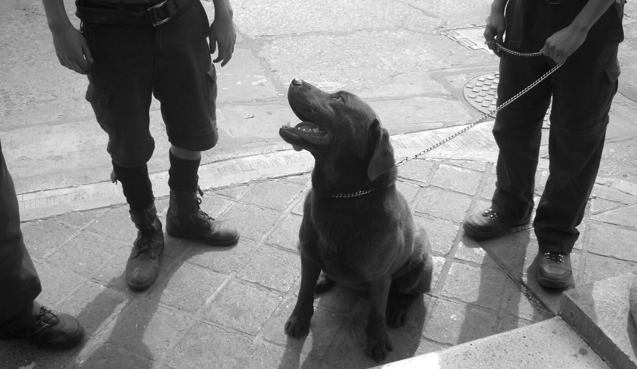 dado el carácter juguetón de estos chuchos. En cambio, en lugares donde hay necesidad de imponer respeto, se tengan perros de aspecto más imponente, como los ‘pastores europeos’, mientras que en determinadas partes, de mayor riesgo, se cuente también con Personal Militar para revisiones más exhaustivas.