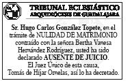 Semanario Arquidiocesano de Guadalajara Órgano de Formación e Información Católica Semanario Arquidiocesano de Guadalajara, fundado por el Sr. Cardenal Dn. Juan Sandoval Íñiguez, el 24 de enero de 1997 Registrado ante la Comisión Calificadora de Publicaciones y Revistas Ilustradas —CCPRI— en Certificados de Licitud de Título y Contenido números 10296 y 7226 expediente 1/432“97”/13565 el 20 de enero de 1998 y en el Instituto Nacional de Derecho de Autor, bajo reserva al uso exclusivo del título 04-2011-070709061600-101 el 7 de julio de 2011 Registro Postal Publicación Periódica PP14-0002-2000, autorización por SEPOMEX No se devuelven originales. Los escritos firmados son responsabilidad del autor, no de la publicación ni del titular Es una publicación editada por Creator Comunicación, S. de RL. de CV., con oficinas y redacción en Isla Flores No. 3344-2, Col. Jardines de San José, Guadalajara, Jal., México, C.P. 44950 A.P. 3-31. Teléfono: 3002-6470. Suscripciones ext. 1953 | Publicidad ext. 1925 | Redacción ext. 1922 Horario de oficina: 8:30 am. a 5:30 pm., correo electrónico: semanario@cccomunicaciones.com.mx Página Internet: http://www.semanario.com.mx • Distribución: Mensajería Tercer Milenio, Jarauta No. 510-A, Tels. 3618-9670, planta alta. Guadalajara, Jal. C.P. 44360