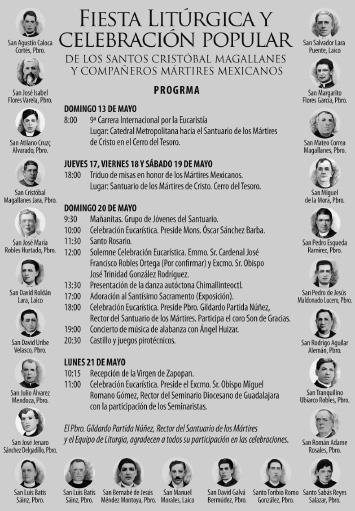 -SANTOS CRISTÓBAL MAGALLANES JARA Y AGUSTÍN CALOCA CORTÉS + 1927 en Colotlán, Jal. Los dos, de familias humildes y pobres. Cristóbal fue ordenado en El Templo de Santa Teresa, Guad. De gran devoción al Sagrado Corazón. Fundó el Seminario Menor de Totatiche. Párroco. Empeñoso catequista y promotor social. Agustín ingresó a ese Seminario de Totatiche. Vicario de San Cristóbal; muy alegre. El Padre Magallanes lo animó ante el paredón. Mártires de Cristo Rey. 26: SAN JOSÉ CHANG SONG-JIB + 1839 en Seúl, Corea. Cristiano. Farmacéutico. Profunda conversión. Preso. Torturado. Mártir a consecuencia de las vejaciones.