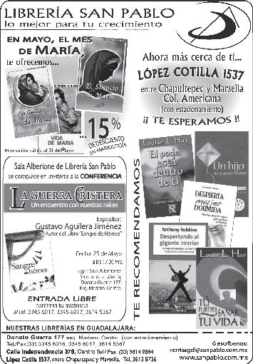Impreso por: Ediciones Católicas de Guadalajara, S.A. de C.V. con oficinas en Isla Flores No. 3344, Col. San José, Tlaquepaque, Jalisco. Tels. 3002-6470. Tiraje: 37,000 a 40,000