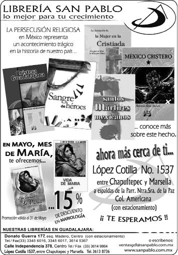 Impreso por: Ediciones Católicas de Guadalajara, S.A. de C.V. con oficinas en Isla Flores No. 3344, Col. San José, Tlaquepaque, Jalisco. Tels. 3002-6470. Tiraje: 37,000 a 40,000
