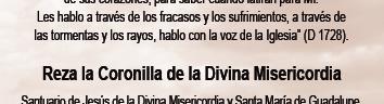 27: -NUESTRA SEÑORA DE LA LUZ, en 1732 pintada por el Padre Jesuita Antonio Genovesi en Palermo, Italia (conforme a una Aparición anónima a una Religiosa). Imagen muy milagrosa. En 1932 los Padres Jesuítas donan la Imagen, con firma de autenticidad, para ser invocada en León, Gto., México. En 1770 fue designada Patrona contra Rayos y Centellas. En 1850 fue invocada ante la Epidemia del Cólera. En 1872, Pío IX la declaró Patrona Principal, y en 1902 León XIII concedió a la Santísima Madre de la Luz la Coronación Pontificia. Su Fiesta es el miércoles siguiente al Jueves de Ascensión. “¡Oh, Madre de la Luz, Virgen María: sea salva, por tu amparo, el alma mía!”