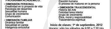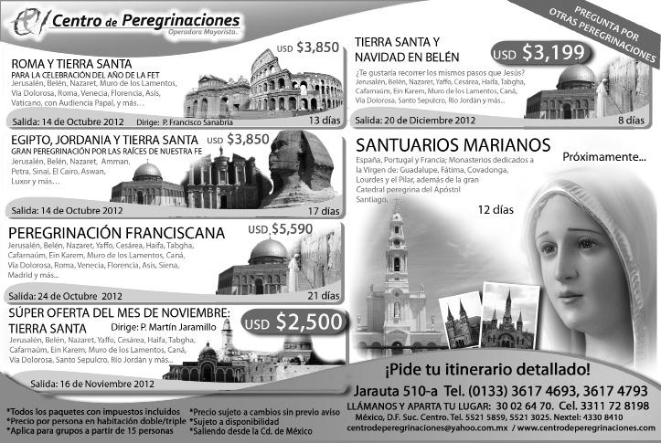 La Comunidad Nueva Alianza de Guadalajara hace una atenta invitación a asistir al evento “Oremos por México, 2012”, que se llevará a cabo en el Santuario de los Mártires de Cristo Rey el 8 de septiembre, de las 16 a las 20 horas. Se contará con la presencia de Lupita Venegas. El Grupo formativo “Agua Viva” invita, durante el mes de septiembre, a mujeres, a participar y redescubrir la alegría de ser católicas y a capacitarse para transmitir valores cristianos; a transformarse y transformar el mundo en que vivimos. La cita es en el Oratorio San Luis Gonzaga (José Ma. Vigil y P. Buzeta). Informes, con Lupita al 3055-3399 ó al 3645-2200, con Ofe.