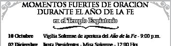 El Ministerio de Laicos Devotos de San Benito Abad, de la Parroquia de la Purísima Concepción (Obregón 485, esquina con Churubusco, Sector Libertad), invita a los interesados a la Hora Santa de Desagravio y Concierto de Adoración, con petición especial para la Santificación de los Sacerdotes, el domingo 28 de octubre a partir de las 16 horas. Mayores informes, al Tel. 3617-7577.