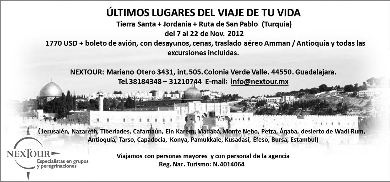Misión Guadalupana para el Mundo realiza el viaje: “Tras las huellas de Santa María de Guadalupe”, que consiste en una Peregrinación a la Basílica de La Morenita, con la intención de que se conozca la historia en los distintos lugares de los hechos, del 19 al 22 de octubre. Será bajo la guía de Juan Tadeo Pun León, investigador de Guadalupe desde hace 17 años. Para pedir informes, llama al 04433-1458-8950.