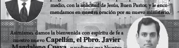 La Parroquia de San Mateo Apóstol invita a formar parte del Grupo de Misioneros Laicos, de reciente creación, “Discípulos Misioneros Kerigmáticos”, que tiene como finalidad llevar el kerigma de Dios a los hermanos más alejados que viven en miseria espiritual. Puedes solicitar informes con la Coordinadora, Marisela Núñez, al Tel. 36740024.