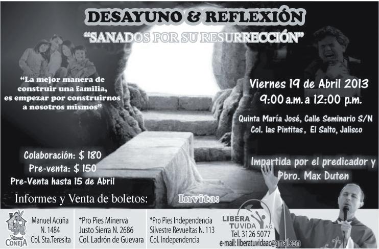 El Centro de Información y Formación Integral, COYFI, atendido por las Hermanas Catequistas de Jesús Crucificado, brinda los siguientes Talleres en el mes de abril: “Me expreso con mi cuerpo”, del 8 al 12; “Comunicación y relación familiar”, del 15 al 18; “Tipos de juegos en la Catequesis”, del 22 al 26. Todos serán impartidos en COYFI, en Galeana 125- B, Zona Centro, de las 19.30 a las 21 horas. Tel. 3614-3666. La Sección de los Derechos Humanos Diocesanos Guadalajara, que tiene por Asesor Diocesano al Pbro. Luis Javier Muñoz Murguía, ofrece, durante el mes de abril, material para los Talleres Educar en la paz, en esta ocasión exclusivos para niños. Los temas son: “Nuestro derecho a ser protegidos de la violencia”, y “Prevención de la violencia”. Todavía se cuenta con material sobre los Talleres para mujeres, como “Manual de Esperanza sobre las Mujeres”, y sobre la “Violencia”. Mayores informes, en Emiliano Zapata 532, entre Industria y Federación, o al Tel. 044-33-1296-9663.