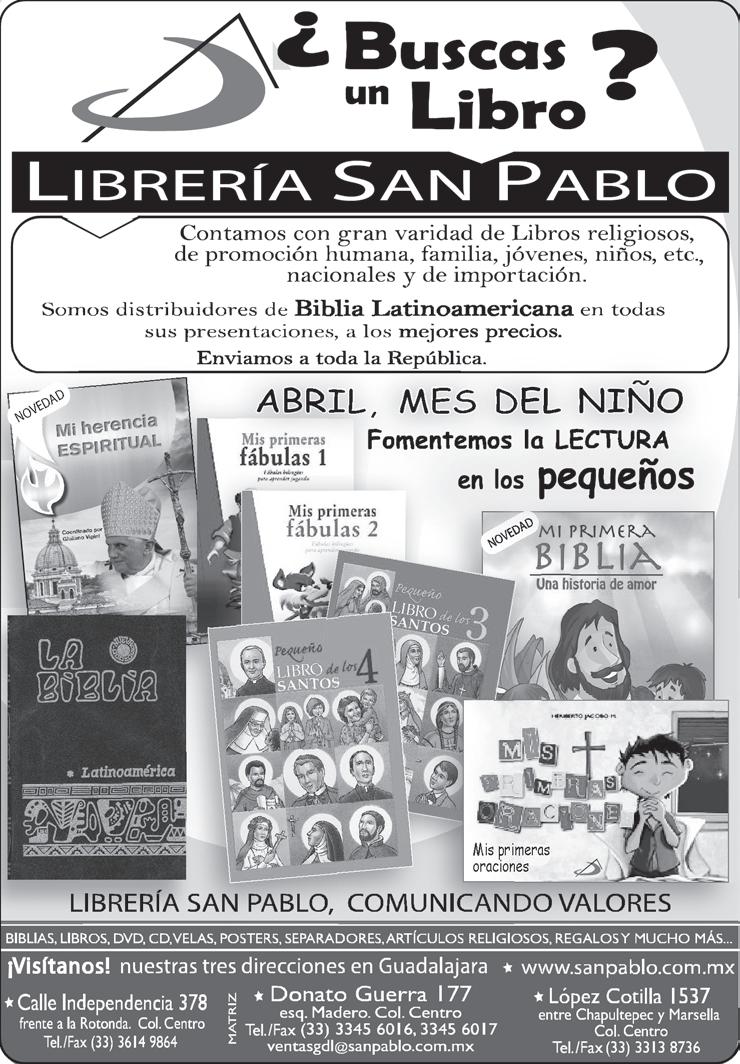 Impreso por: Ediciones Católicas de Guadalajara, S.A. de C.V. con oficinas en Isla Flores No. 3344, Col. San José, Tlaquepaque, Jalisco. Tels. 3002-6470. Tiraje: 37,000 a 40,000