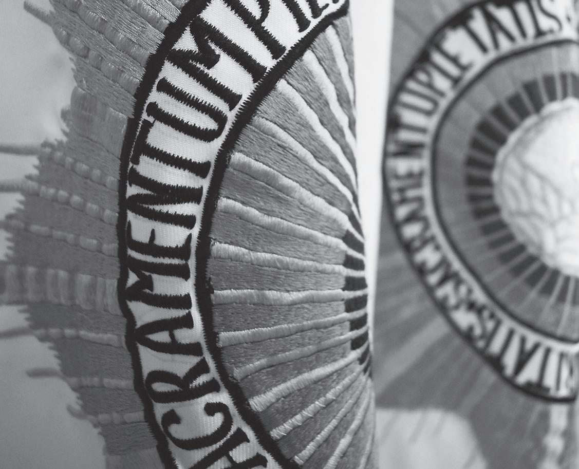 "Los dos rayos indican Agua y Sangre. El rayo pálido significa el Agua que hace a las almas, justas. El rayo rojo significa la Sangre, que es la vida de las almas.