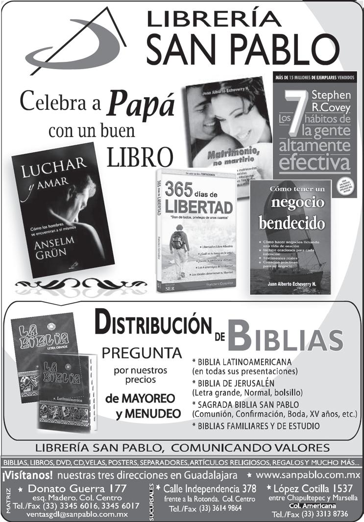 Impreso por: Ediciones Católicas de Guadalajara, S.A. de C.V. con oficinas en Isla Flores No. 3344, Col. San José, Tlaquepaque, Jalisco. Tels. 3002-6470. Tiraje: 37,000 a 40,000