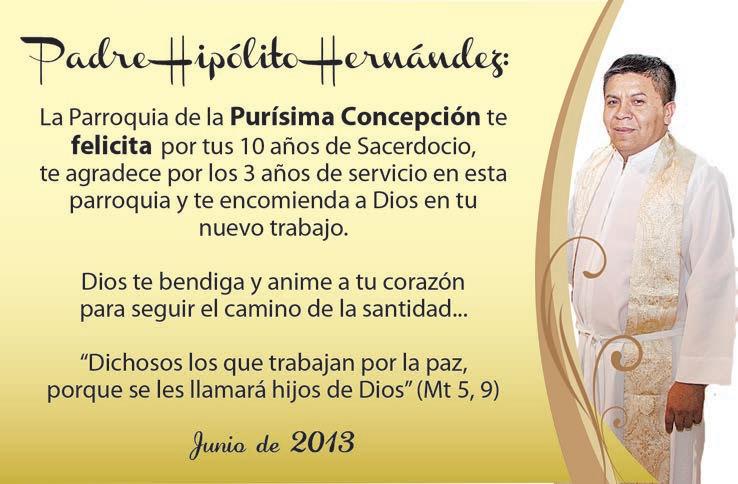 Domingo 30 La Visitación Sr. Cura Hugo Mercado González.