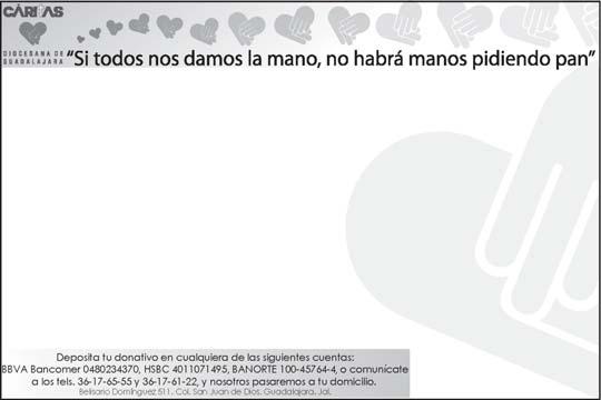 Impreso por: Ediciones Católicas de Guadalajara, S.A. de C.V. con oficinas en Isla Flores No. 3344, Col. San José, Tlaquepaque, Jalisco. Tels. 3002-6470. Tiraje: 37,000 a 40,000