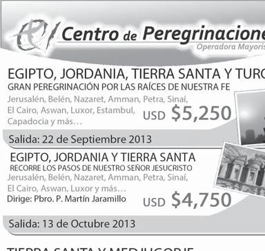 Misión Guadalupana para el Mundo realiza el viaje: “Tras las huellas de Santa María de Guadalupe”, que consiste en una Peregrinación a la Basílica de La Morenita, con la intención de que se conozca la Historia en los distintos lugares de los hechos, del 26 al 28 de julio. Será bajo la guía de Juan Tadeo Pun León, Investigador de Guadalupe desde hace 17 años. Para pedir informes, llama al 3331-2642 ó al Cel. 044-33-1458-8950.