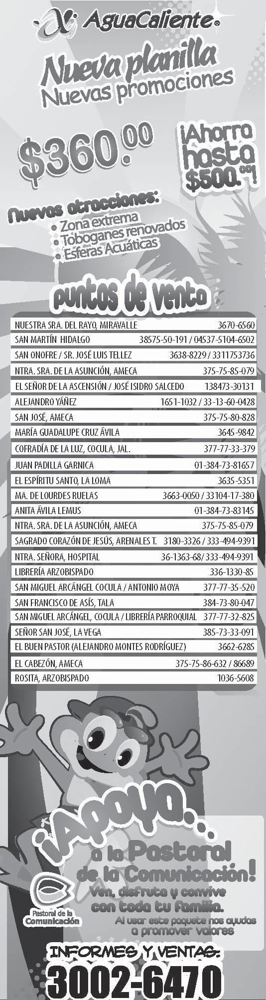 Impreso por: Ediciones Católicas de Guadalajara, S.A. de C.V. con oficinas en Isla Flores No. 3344, Col. San José, Tlaquepaque, Jalisco. Tels. 3002-6470. Tiraje: 37,000 a 40,000