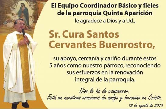 Tan sólo con dar principio a esta vuelta a las actividades escolares con actitudes positivas, con valores, estaremos haciendo un ejercicio valioso de apoyo a la educación, y también, el participar de esta manera, educará a las personas y a la Sociedad de la cual forman parte. Yo los bendigo en el nombre del Padre y del Hijo y del Espíritu Santo.