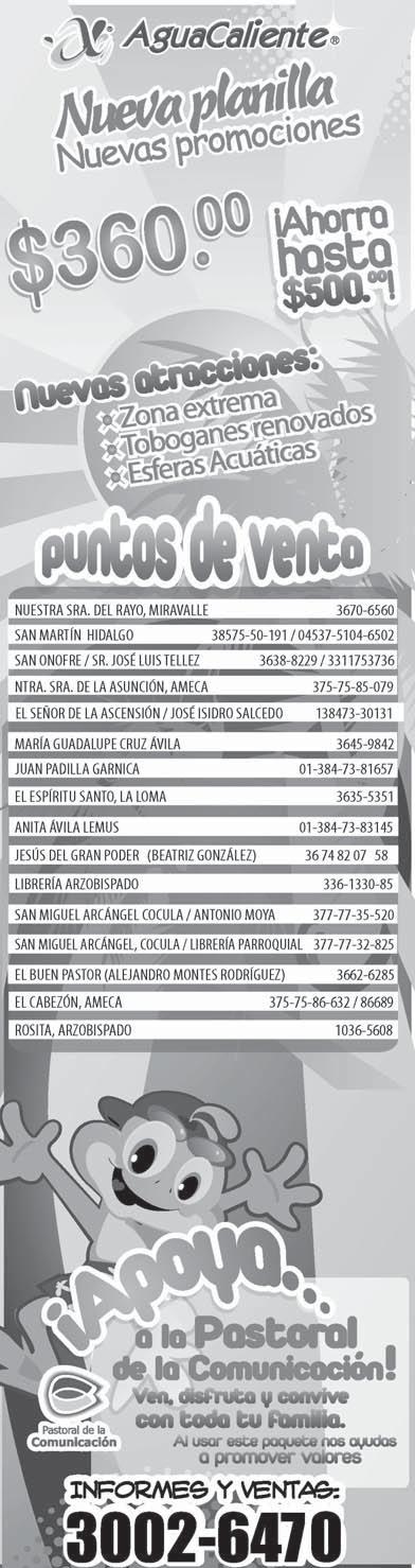 Impreso por: Ediciones Católicas de Guadalajara, S.A. de C.V. con oficinas en Isla Flores No. 3344, Col. San José, Tlaquepaque, Jalisco. Tels. 3002-6470. Tiraje: 37,000 a 40,000
