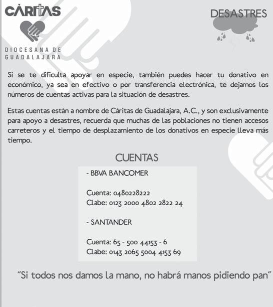 rosidad para compartir oraciones, sentimientos y ayuda material y económica. A nivel nacional, Cáritas encabeza los acopios.