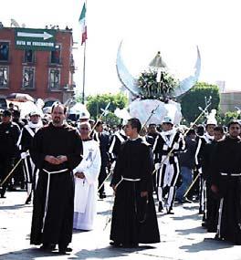2- La Basílica entera estaba salpicada de hábitos propios del claustro; eran ya los días de las Décimas en honor del Santo de Asís. Se esparcía, entre la rigidez de las canteras, un blando murmullo cadencioso de la salmodia de los Laudes, una oración impregnada de musicalidad que bendecía con gozo y emanaba armonía y serenidad. Entreveradas entre los habitantes del convento estaban algunas personas, hombres y mujeres, que intentaban farfullar alguna súplica conveniente a sus carencias. Asimismo, un puñado de Religiosas daba un tono alegre, como de campanario festivo, al coro lleno de peticiones. Y en aquella simplicidad de un amanecer humedecido por la noche, se vio extender sus pasos, por el pasillo central, a un pobre, uno de esos miles que retoñan en calles y cruceros. No lo detenía la compostura de los presentes ni sus cantos salpicados de diálogos breves. Él se detuvo y miró al Cristo; luego posó sus ojos en la Virgen Zapopana; volteó hasta lo alto hasta encontrarse con la figura de Francisco, aquél que predicó sin hablar mucho, pero vivió cercano a toda gente, adultos,