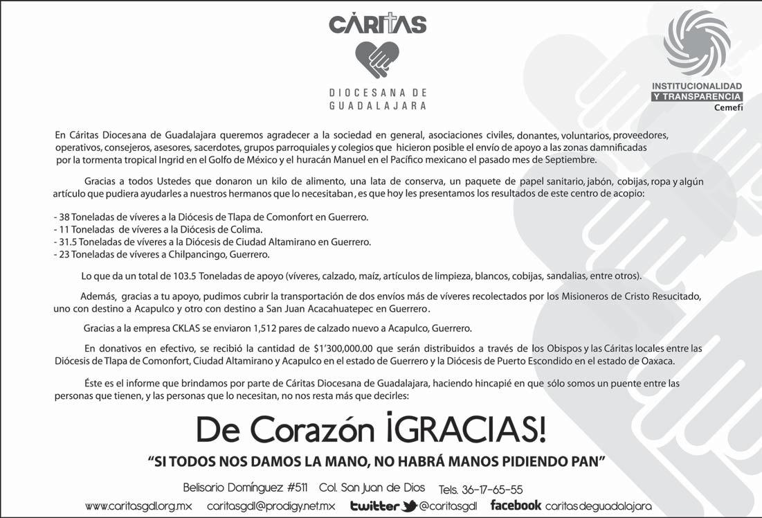 Órgano de Formación e Información Católica Semanario Arquidiocesano de Guadalajara, fundado por el Sr. Cardenal Dn. Juan Sandoval Íñiguez, el 24 de enero de 1997 Registrado ante la Comisión Calificadora de Publicaciones y Revistas Ilustradas —CCPRI— en Certificados de Licitud de Título y Contenido números 10296 y 7226 expediente 1/432“97”/13565 el 20 de enero de 1998 y en el Instituto Nacional de Derecho de Autor, bajo reserva al uso exclusivo del título 04-2011-070709061600-101 el 7 de julio de 2011 Registro Postal Publicación Periódica PP14-0002-2000, autorización por SEPOMEX No se devuelven originales. Los escritos firmados son responsabilidad del autor, no de la publicación ni del titular Es una publicación editada por Creator Comunicación, S. de R.L. de C.V., con oficinas y redacción en Isla Flores N. 3344-2, Col. Jardines de San José, Guadalajara, Jal., México, C.P. 44950 A.P. 3-31. Teléfono: 3002-6470. Suscripciones: Ext. 1953 | Publicidad: Ext. 1925 | Redacción: Ext. 1922 Horario de oficina: 8:30 a.m. a 5:30 p.m., correo electrónico: semanario@cccomunicaciones.com.mx