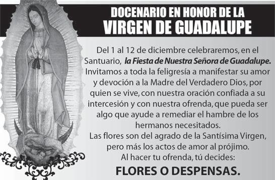 en la devoción de los 46 Rosarios a la Virgen de Guadalupe en el Santuario dedicado a La Morenita en nuestra Ciudad, que comenzaron el 28 de octubre y terminarán el 12 de diciembre, a las 18 horas entre se-