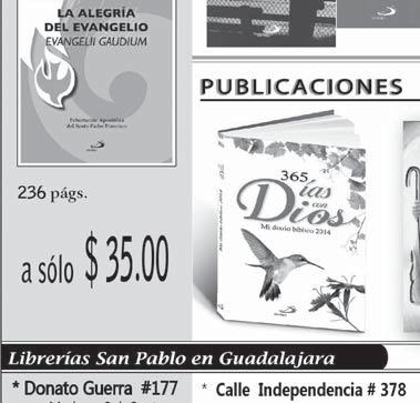 Impreso por: Ediciones Católicas de Guadalajara, S.A. de C.V. con oficinas en Isla Flores N. 3344, Col. San José, Tlaquepaque, Jalisco. Tel. 3002-6470. Tiraje: 37,000 a 40,000