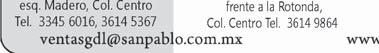 Tel. 3618-9670, planta alta. Guadalajara, Jal. C.P. 44360