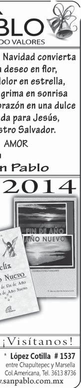 Impreso por: Ediciones Católicas de Guadalajara, S.A. de C.V. con oficinas en Isla Flores N. 3344, Col. San José, Tlaquepaque, Jalisco. Tel. 3002-6470. Tiraje: 37,000 a 40,000