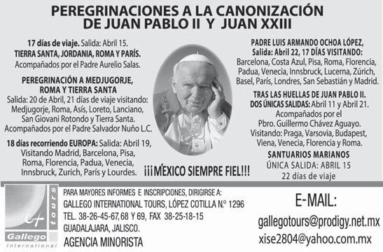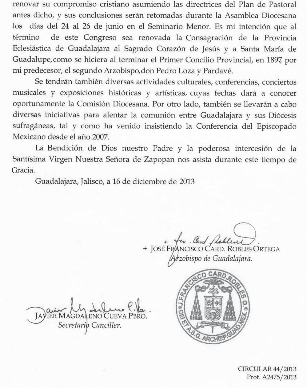 Órgano de Formación e Información Católica Semanario Arquidiocesano de Guadalajara, fundado por el Sr. Cardenal Dn. Juan Sandoval Íñiguez, el 24 de enero de 1997 Registrado ante la Comisión Calificadora de Publicaciones y Revistas Ilustradas —CCPRI— en Certificados de Licitud de Título y Contenido números 10296 y 7226 expediente 1/432“97”/13565 el 20 de enero de 1998 y en el Instituto Nacional de Derecho de Autor, bajo reserva al uso exclusivo del título 04-2011-070709061600-101 el 7 de julio de 2011 Registro Postal Publicación Periódica PP14-0002-2000, autorización por SEPOMEX No se devuelven originales. Los escritos firmados son responsabilidad del autor, no de la publicación ni del titular Es una publicación editada por Creator Comunicación, S. de R.L. de C.V., con oficinas y redacción en Isla Flores N. 3344-2, Col. Jardines de San José, Guadalajara, Jal., México, C.P. 44950 A.P. 3-31. Teléfono: 3002-6470. Suscripciones: Ext. 1953 | Publicidad: Ext. 1925 | Redacción: Ext. 1922 Horario de oficina: 8:30 a.m. a 5:30 p.m., correo electrónico: semanario@cccomunicaciones.com.mx