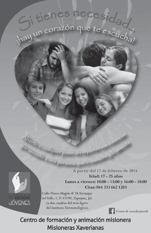 El Colegio Santa Anita y la Escuela de Padres “Camino de Luz” convida a la Conferencia “Reingeniería Conyugal”, dirigida a los padres de familia y matrimonios en general, el 17 de febrero a las 18.30 horas. Será impartida por la Lic. Rebeca Lozano, en Calle Ramón Corona 250, Santa Anita. Pastoral Bíblica invita a su Taller “Diferentes métodos de orar con la Palabra”, impartido por el Pbro. Fidel Martínez Ramírez en las instalaciones del Instituto Bíblico Católico (Av. de la Paz 1665, Col. Americana), el 9 de febrero, de las 10 a las 14 horas. Cooperación, de $35. Informes, al 044-331289-9633.
