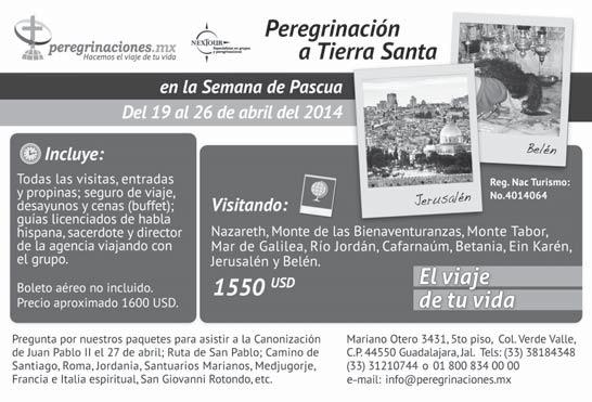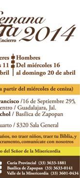 La Fraternidad Misionera de Jesús Maestro tendrá Misión de Semana Santa en Valle de Bravo, Estado de México. Se pide que asistas a la preparación los sábados a las 17 horas, en la Casa Pastoral Madre Santísima de la Luz (Río Bravo 1230, Col. Quinta Velarde). Informes, al Tel. 044-33-1433-5176.