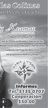 Proyecto Génesis convida a vivir un Encuentro con Cristo, para jóvenes de 17 a 28 años de edad, del 21 al 23 de marzo, en la Parroquia de La Preciosa Sangre de Cristo (Plan de San Luis 3454, Fracc. Revolución). Costo, $350. Informes, al Cel. 33-1147-4074, con Archi.