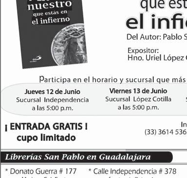 Disponible en LIBRERÍA VERBUM Av. Conchita 4556, Colonia Lomas de la Victoria. Tels. 3144 3322 y 3144 3073. evdgdl@prodigy.net.mx